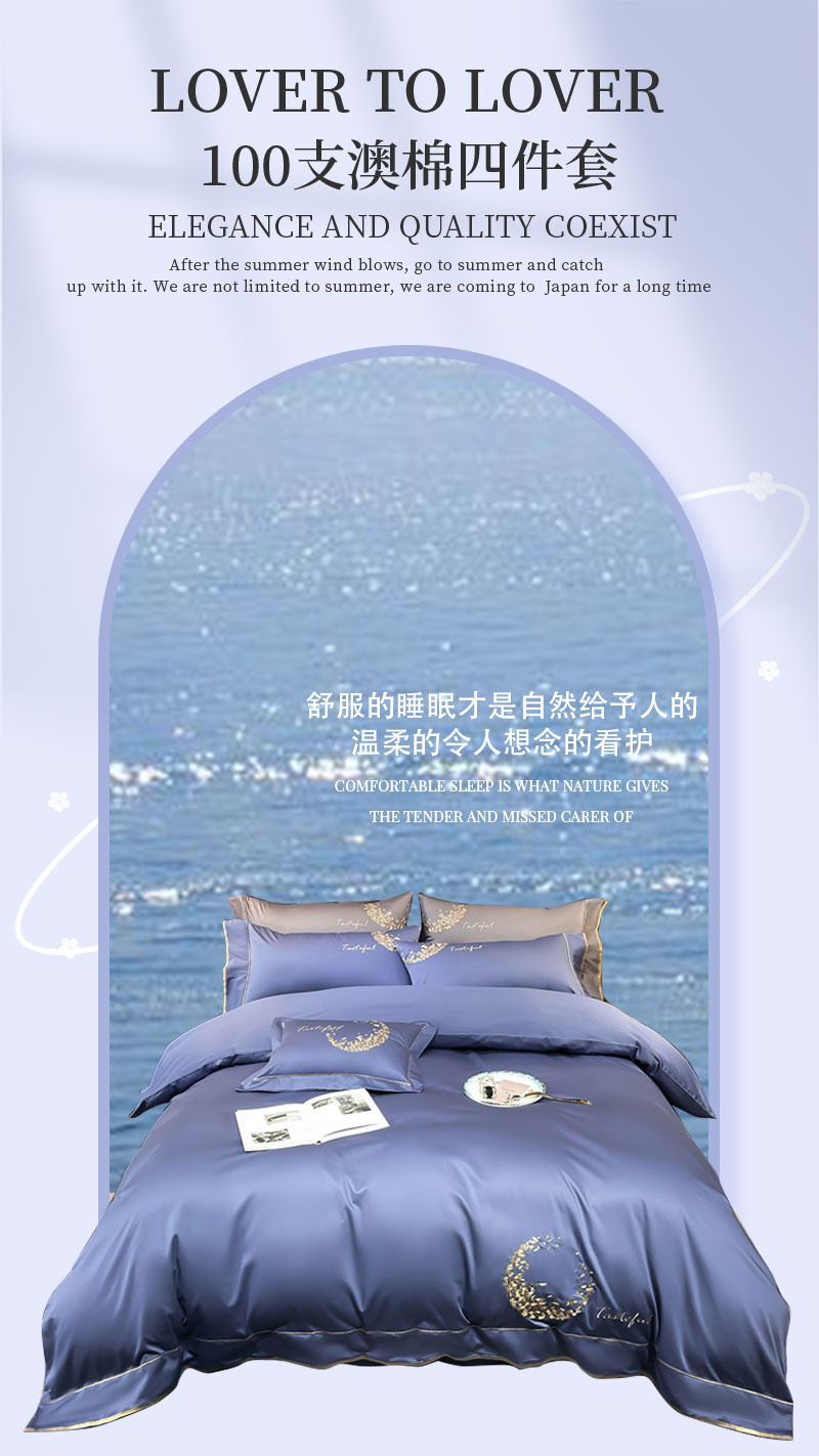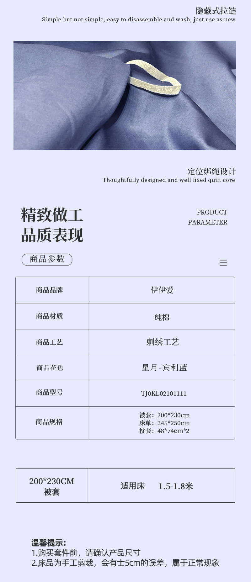 伊伊爱星月100支澳棉四件套200*230cm TJ0KL02101111(套) 宾利蓝
