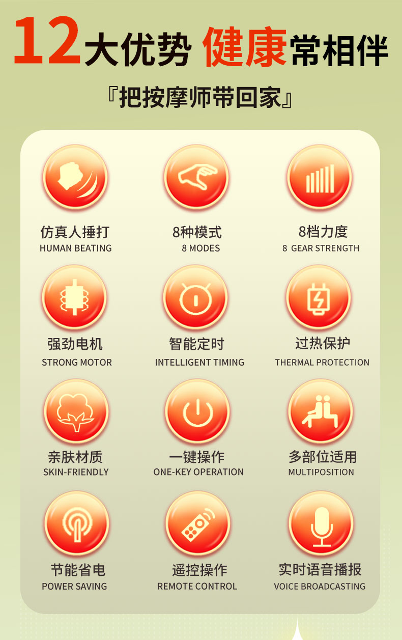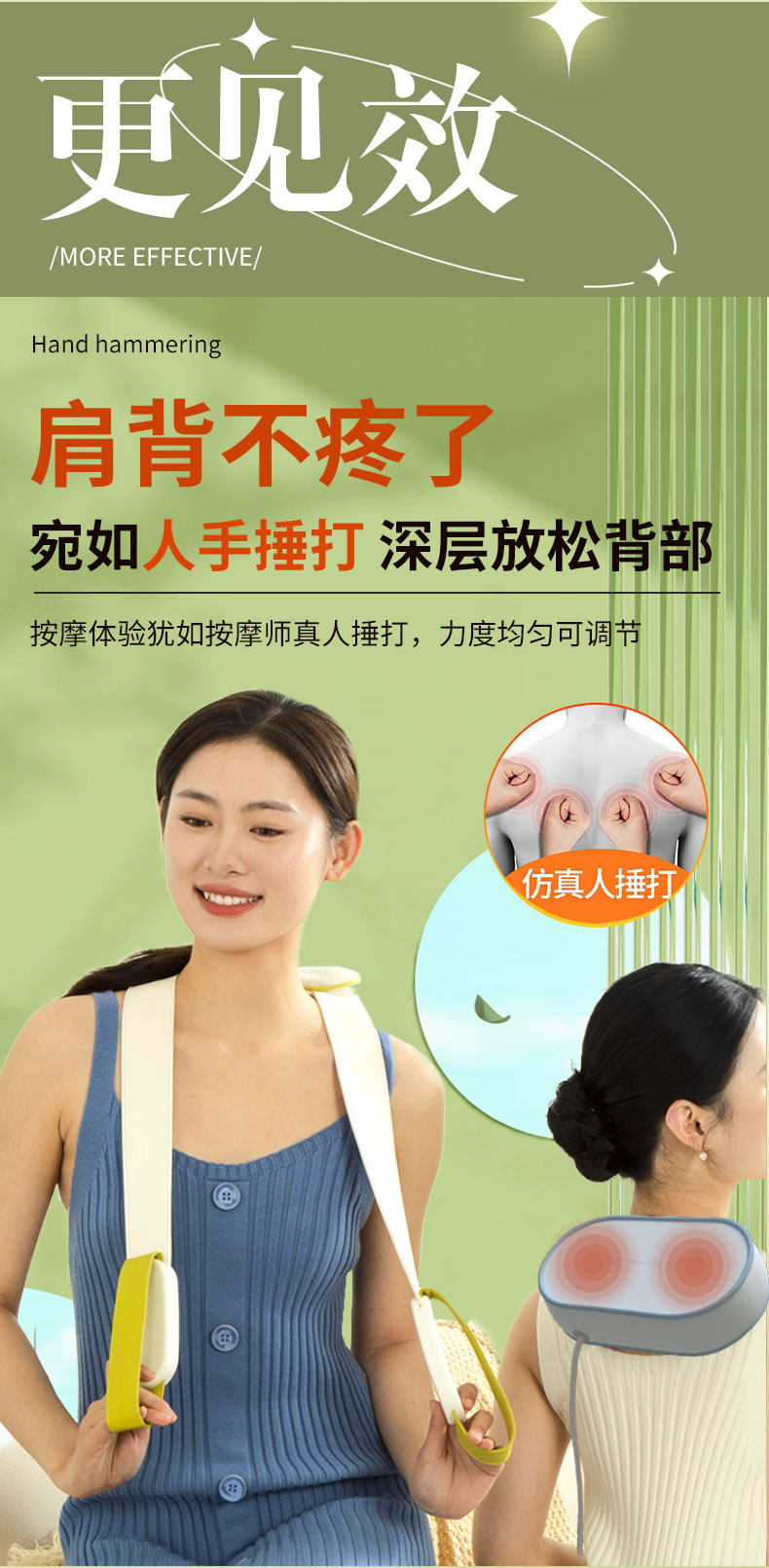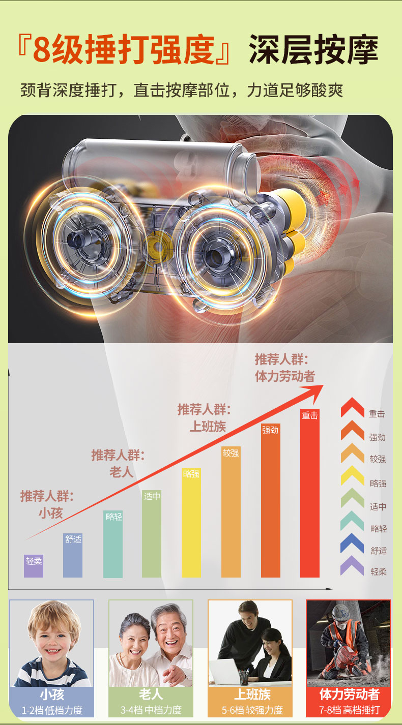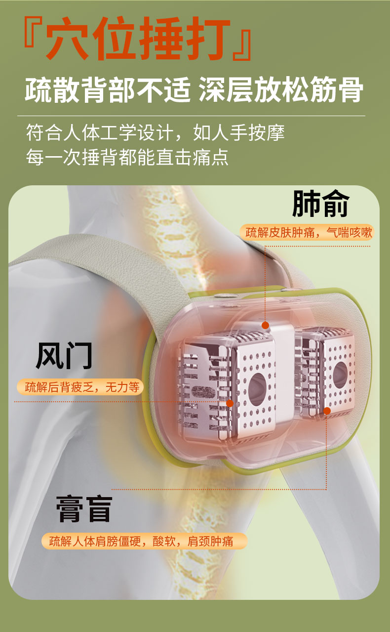 和正(HEZHENG) 和正捶捶爽颈肩按摩器 HZ-C1 8档模式 绿色(单位:个)