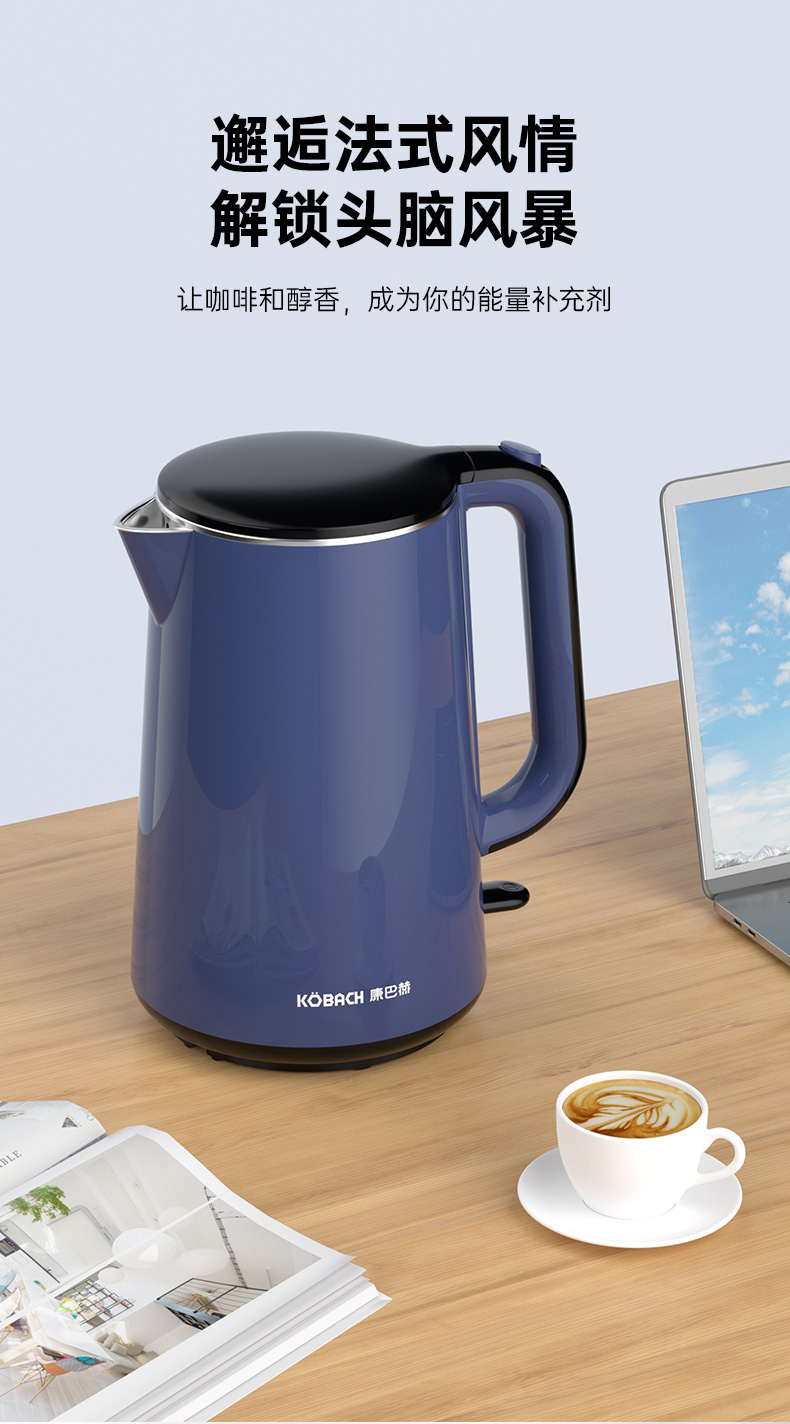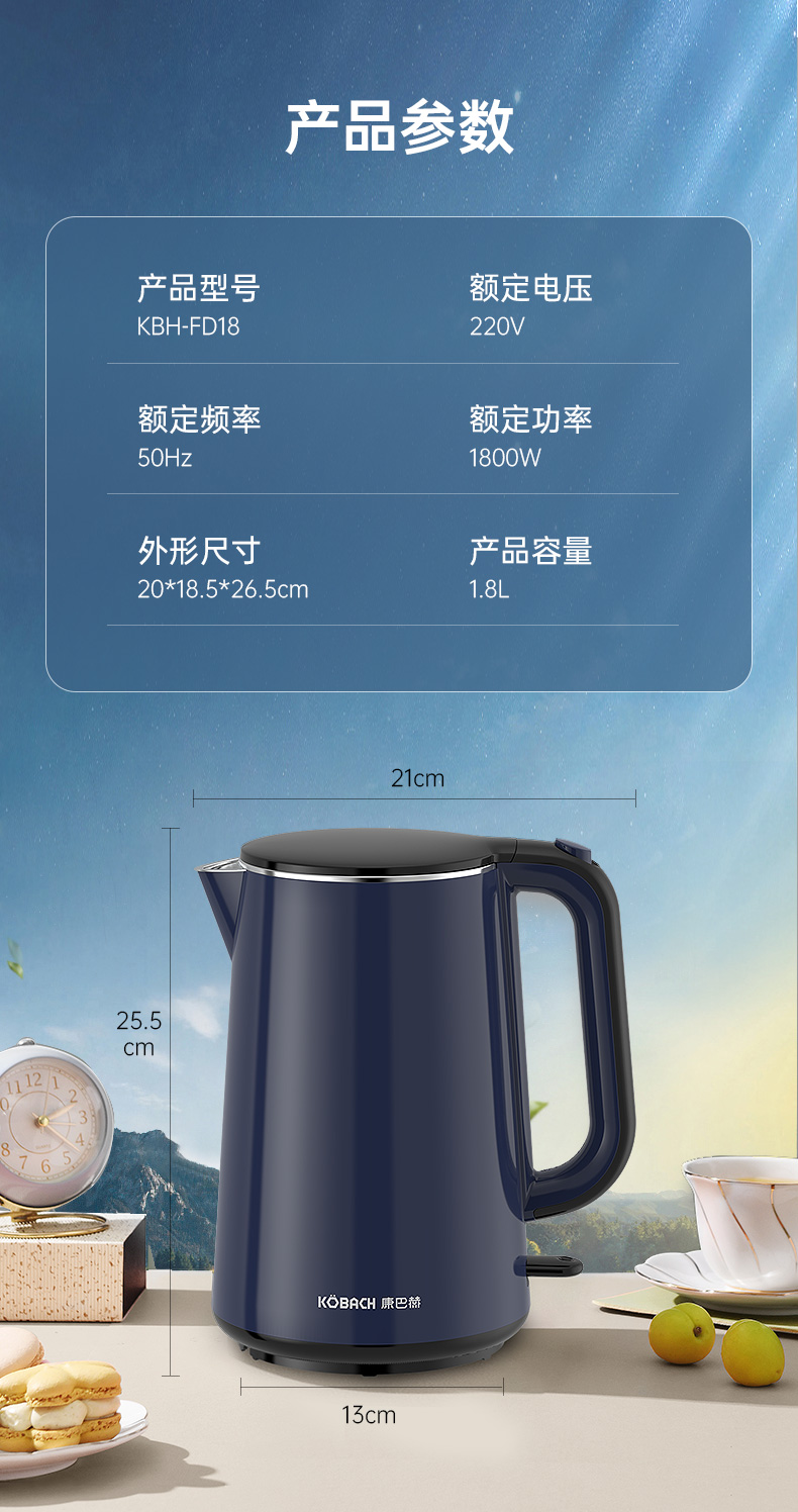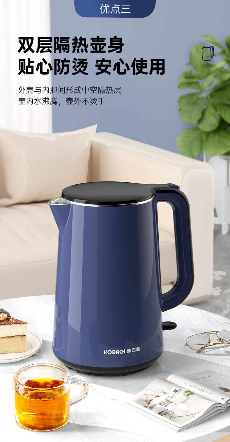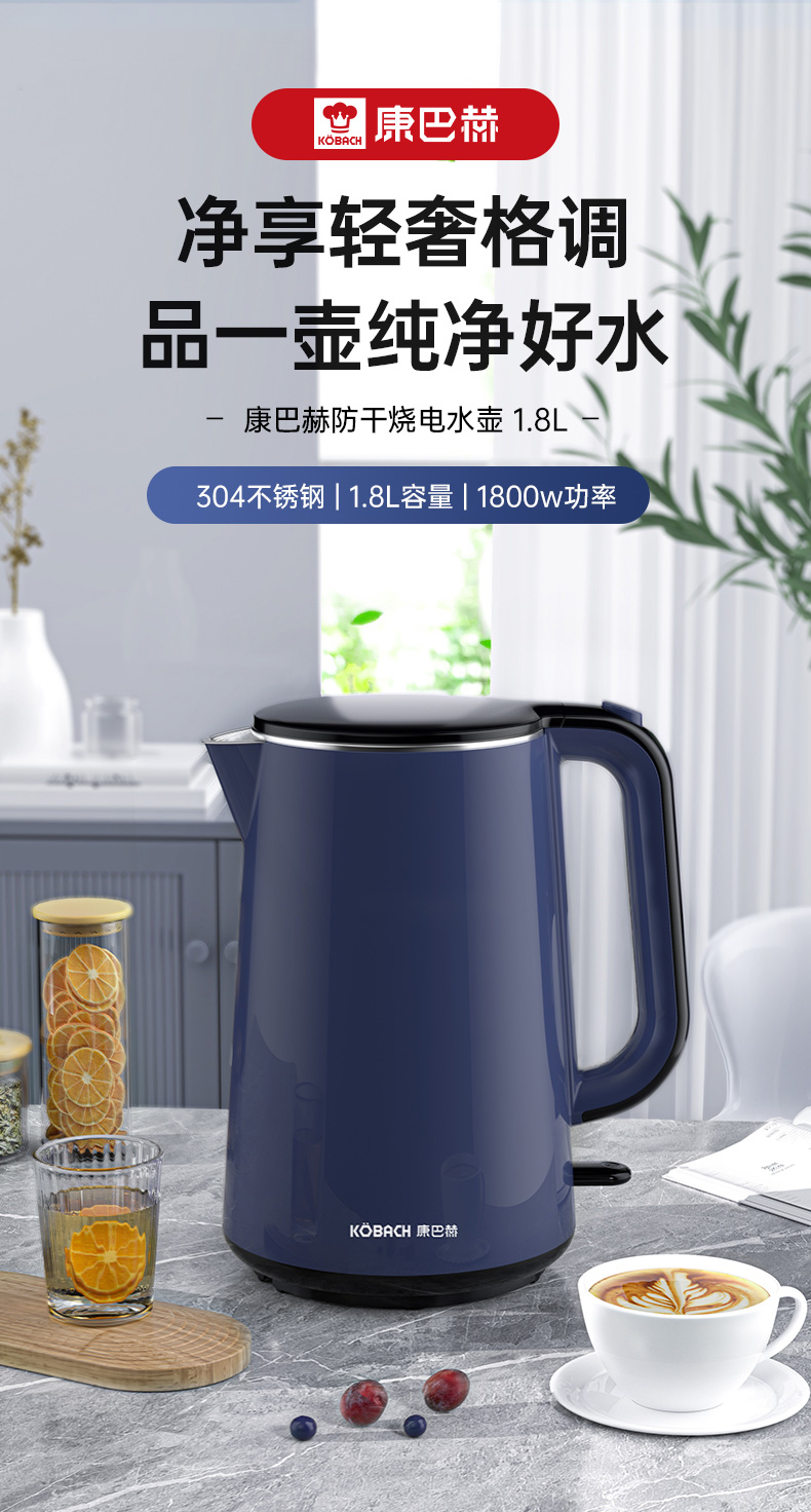 康巴赫防干烧电水壶1.8L KBH- FD18B(单位:个)14060128 蓝色