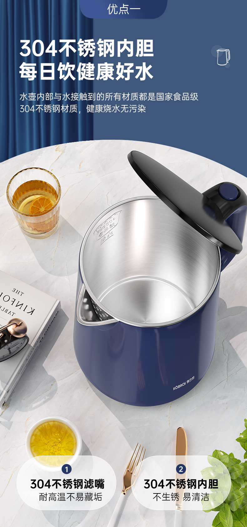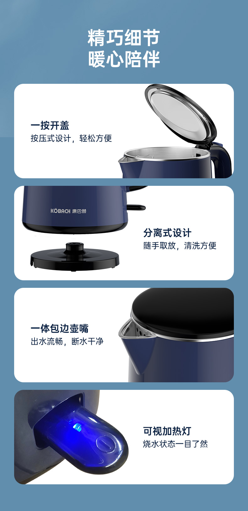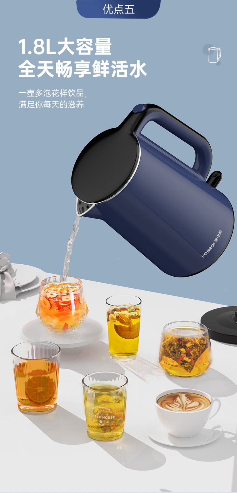 康巴赫防干烧电水壶1.8L KBH- FD18B(单位:个)14060128 蓝色