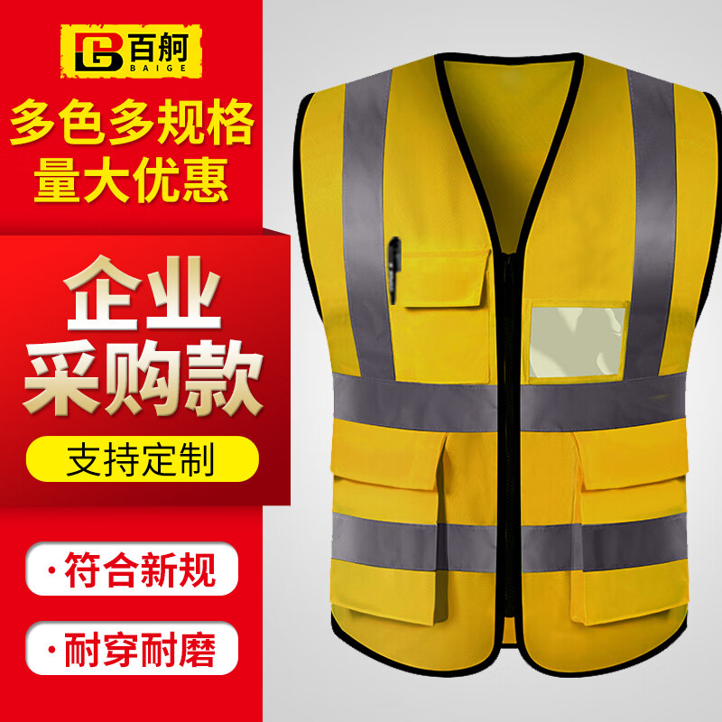 百舸 反光背心耐磨加厚 多口袋拉链款 黄色 BG-ST-4233-0(单位:件) 黄色