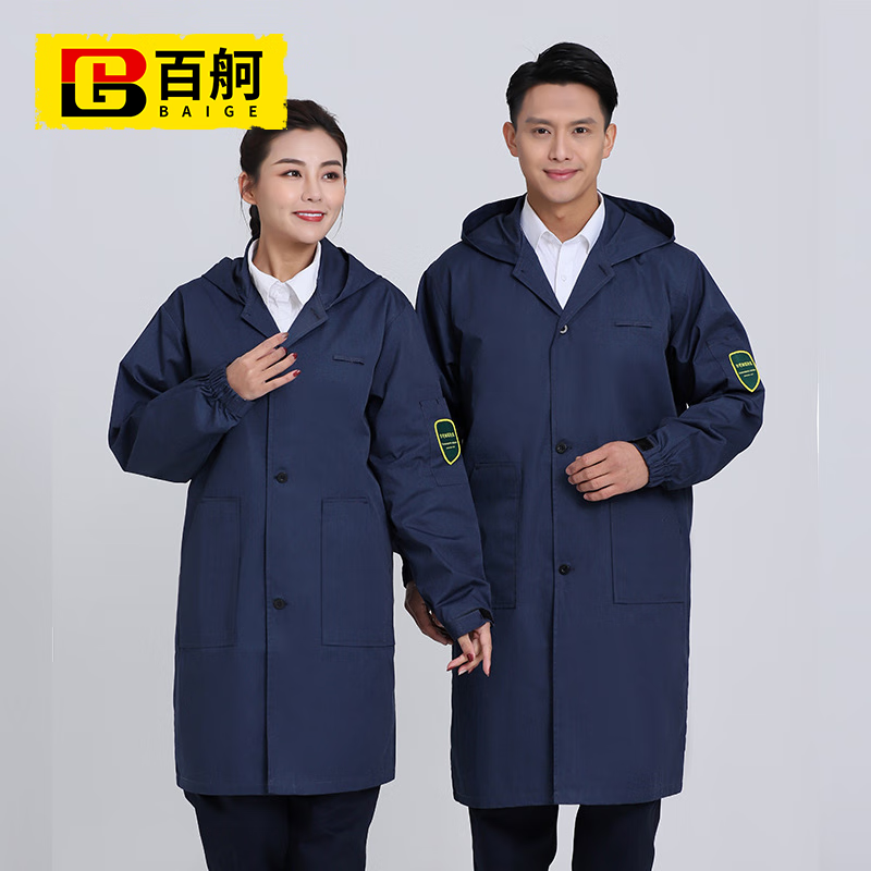 百舸 防磁辐射大褂工作服戴帽子 藏蓝色大码 BG-ST-1429(单位:件) 藏蓝色