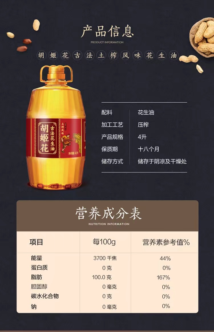 胡姬花古法土榨花生油4L(单位:桶)