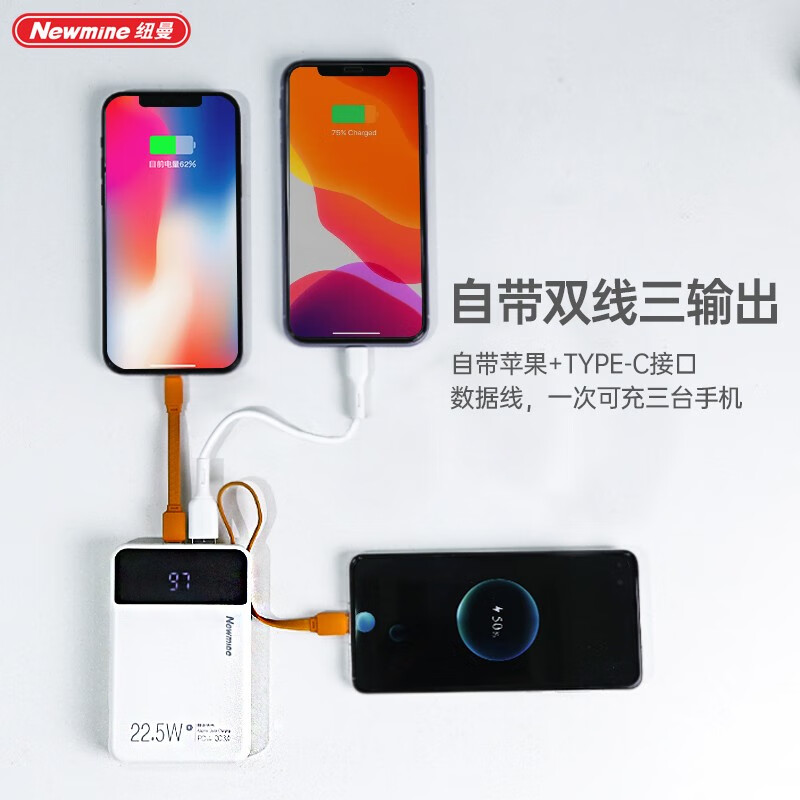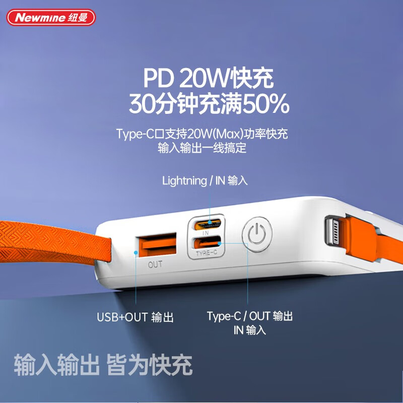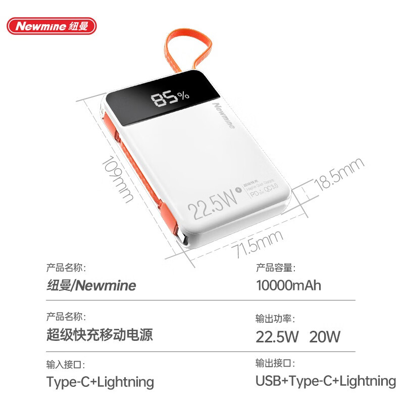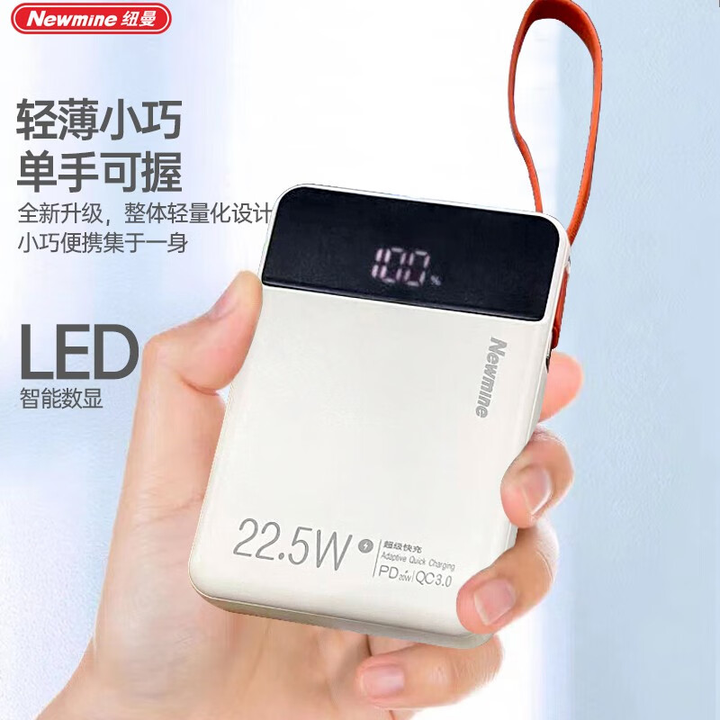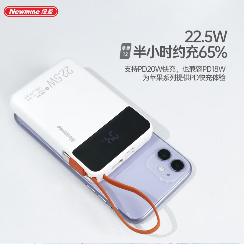 纽曼P168快充22.5W自带线1万毫安充电宝(单位:个) 白色