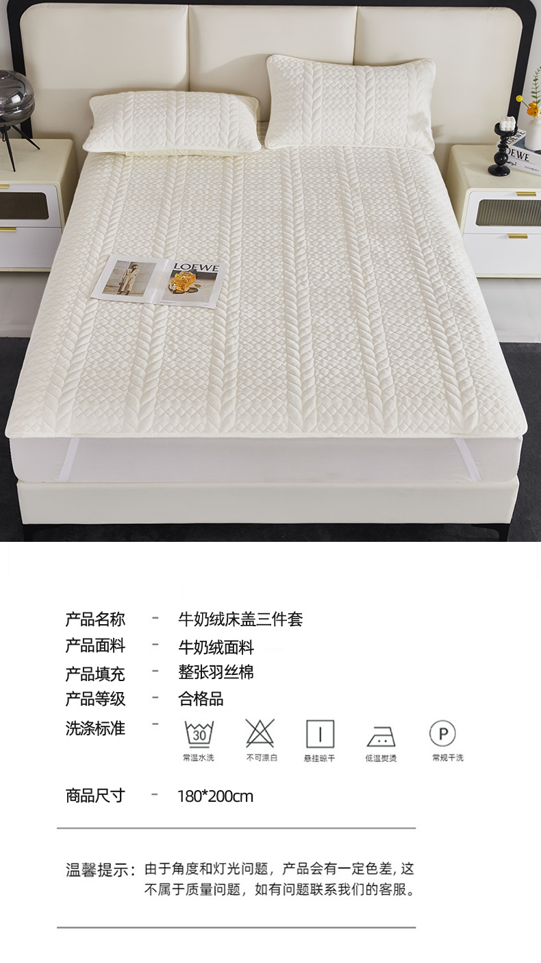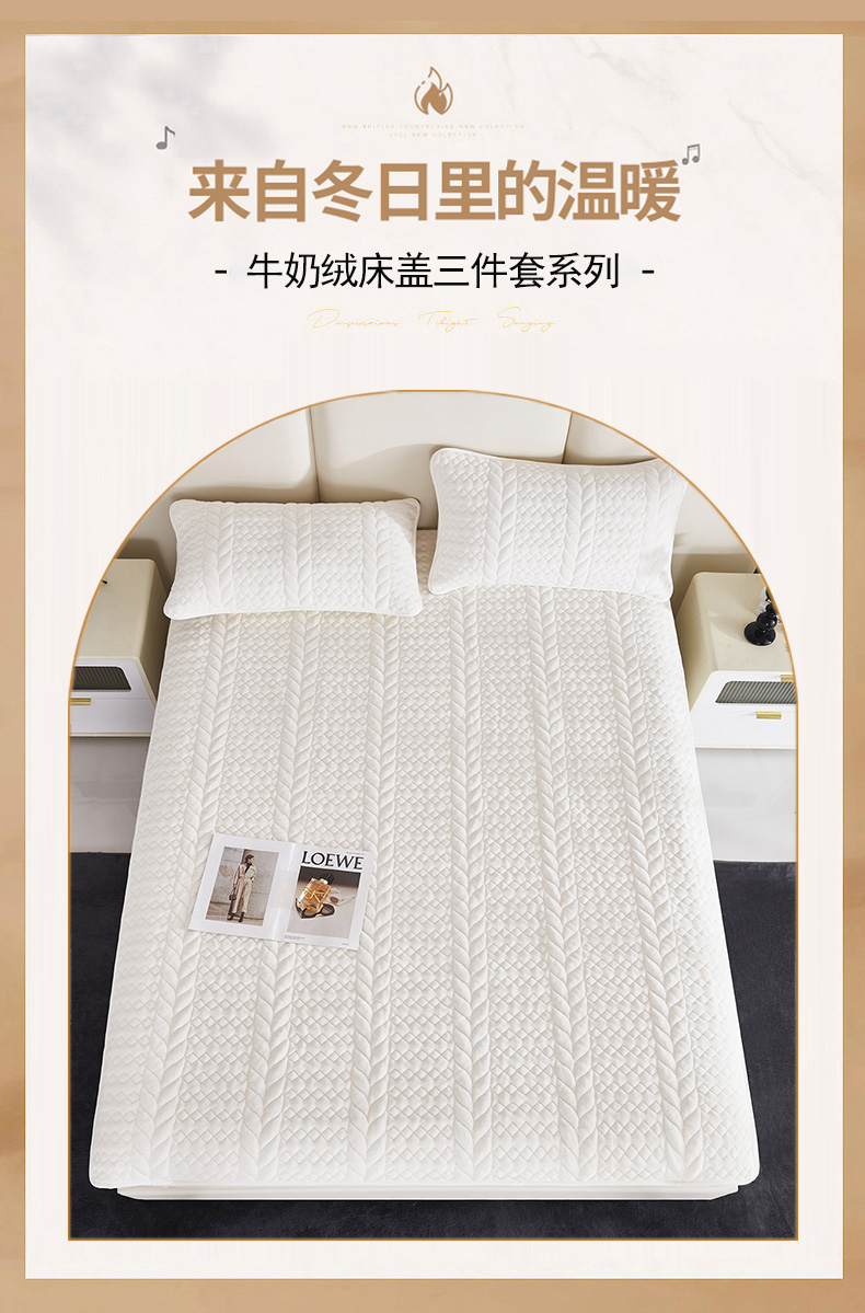 红蜻蜓牛奶绒床盖三件套 HQT-3012 白色