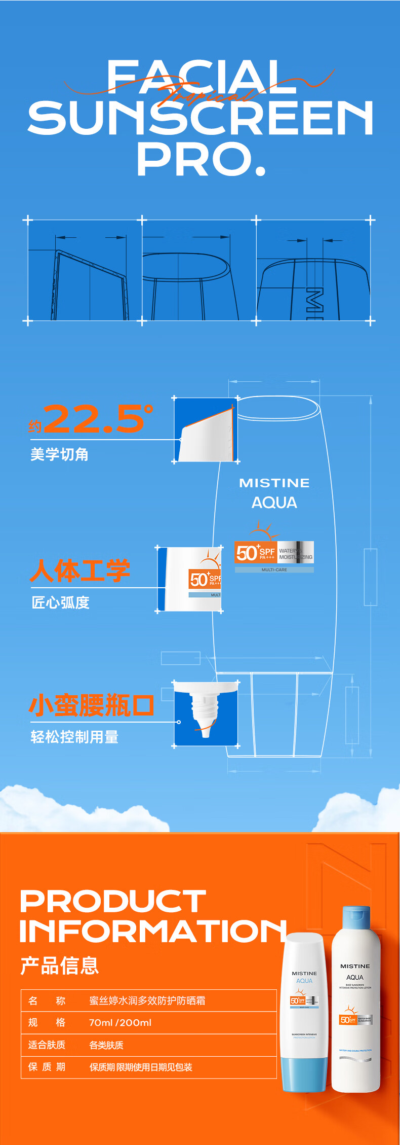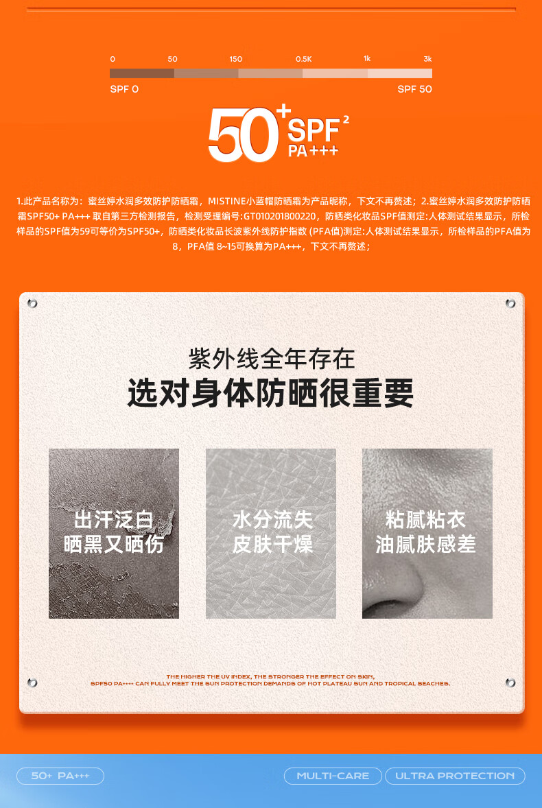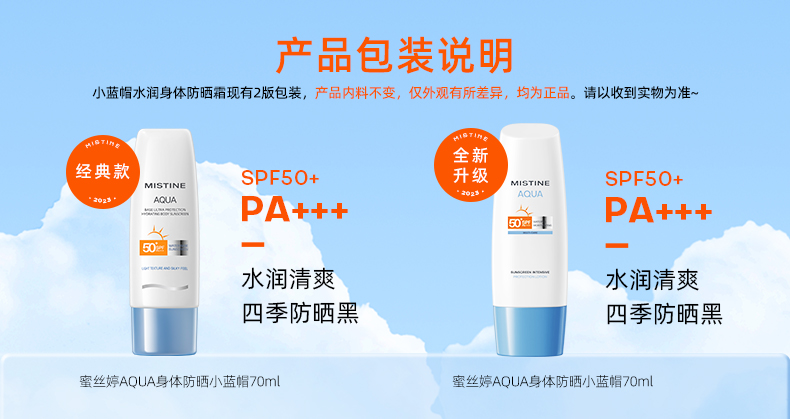 Mistine蜜丝婷新版身体防晒水润养肤隔离小蓝帽防晒霜乳70ml 户外军训(单位:支)