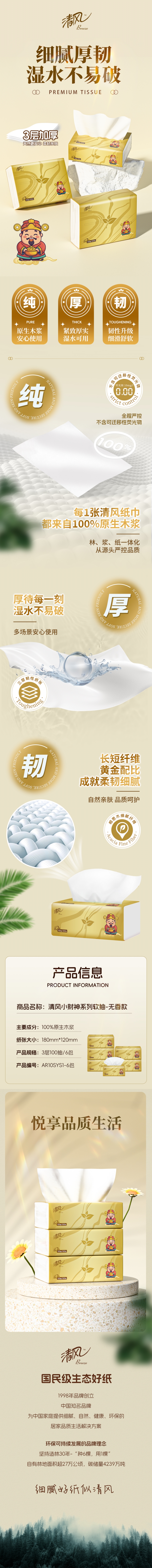 清风 AR10SYS-6包 3层100抽6包 小财神系列抽纸 金色(单位:组)