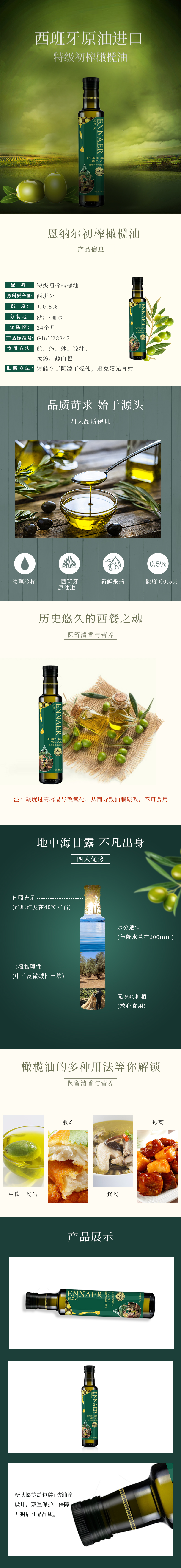 【恩纳尔】特级初榨橄榄油500ml(单位:瓶) 绿色