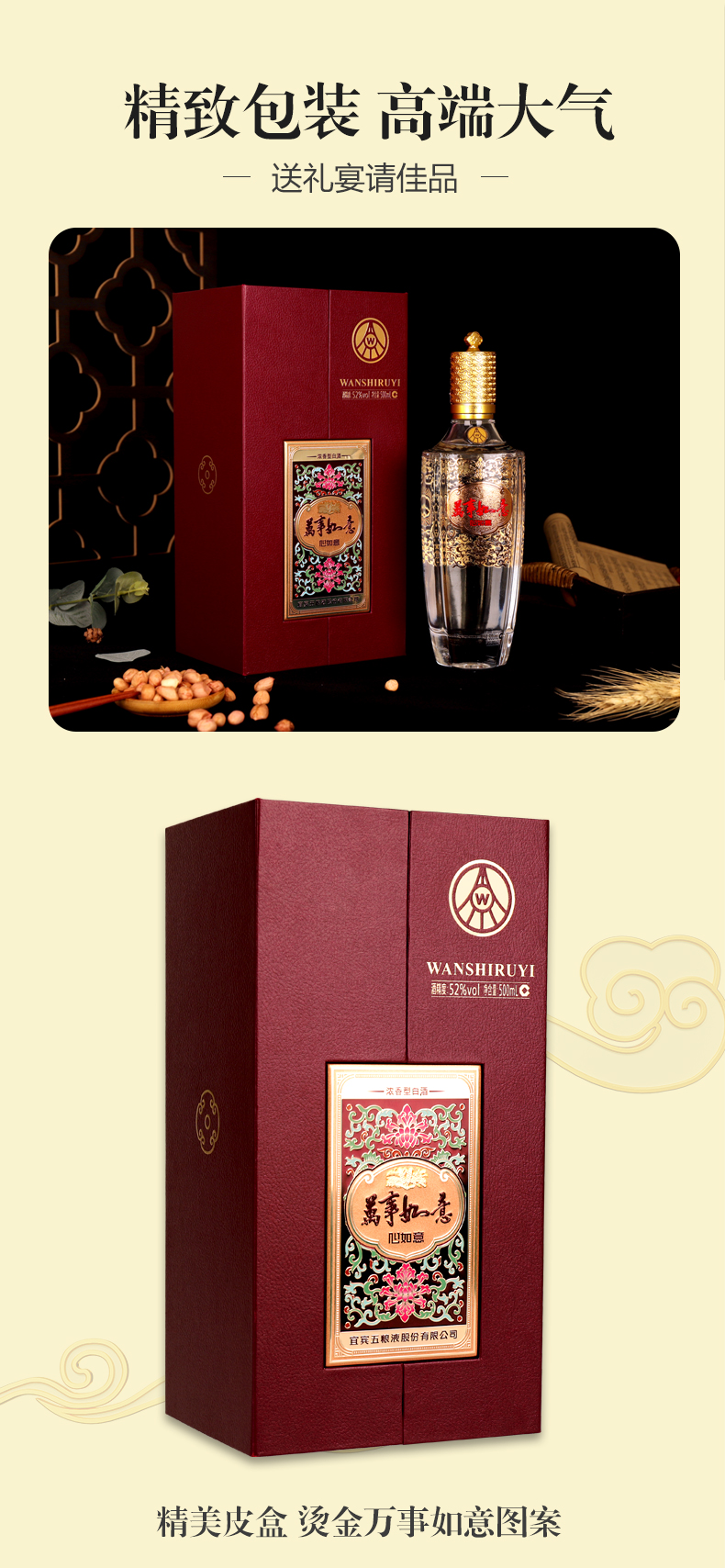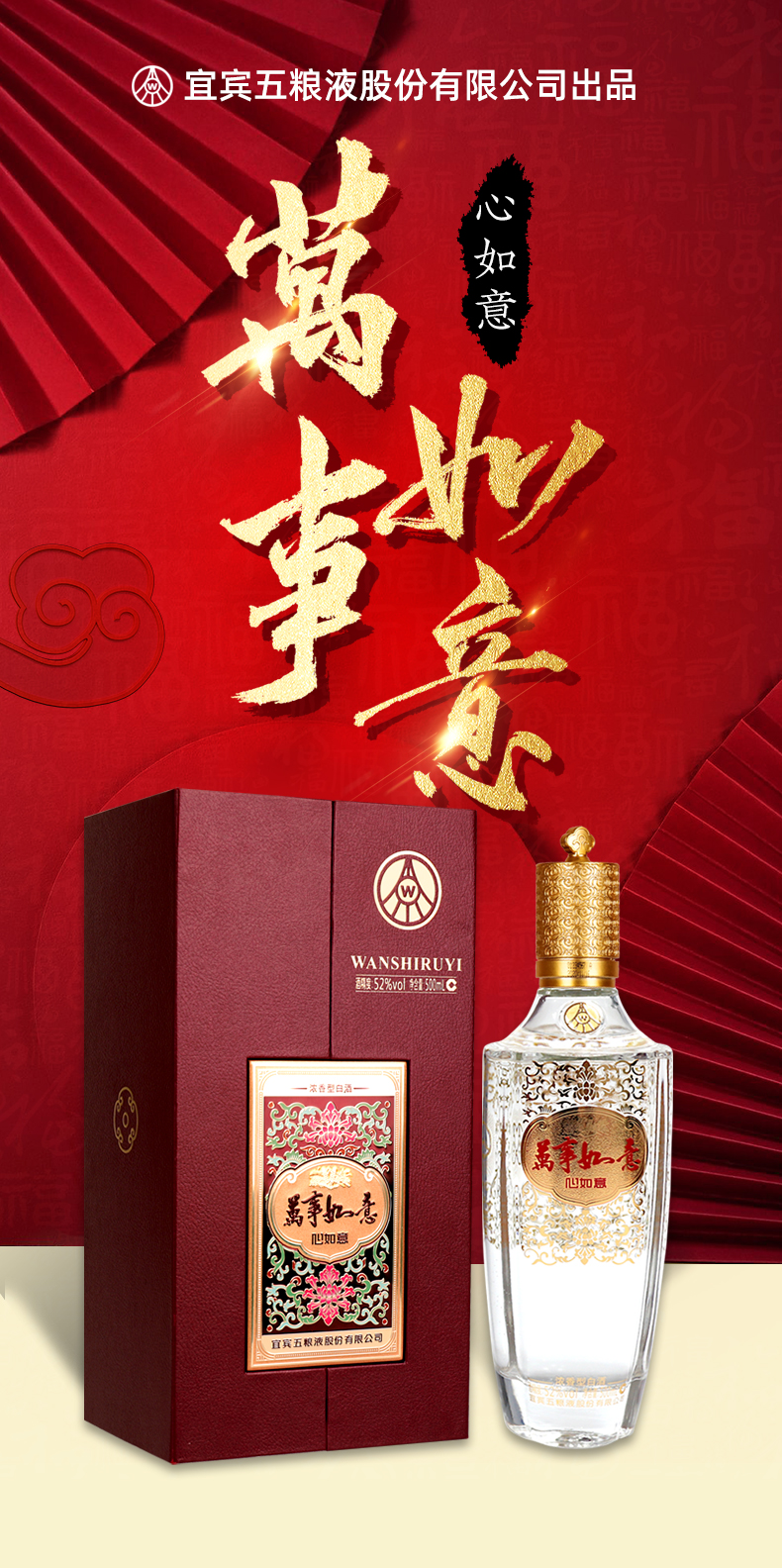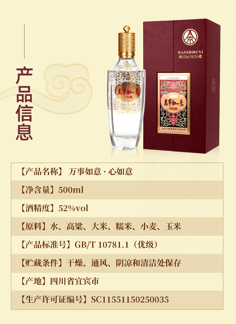 五粮液 万事如意 心如意 52度浓香型白酒 500ml *1瓶 红色