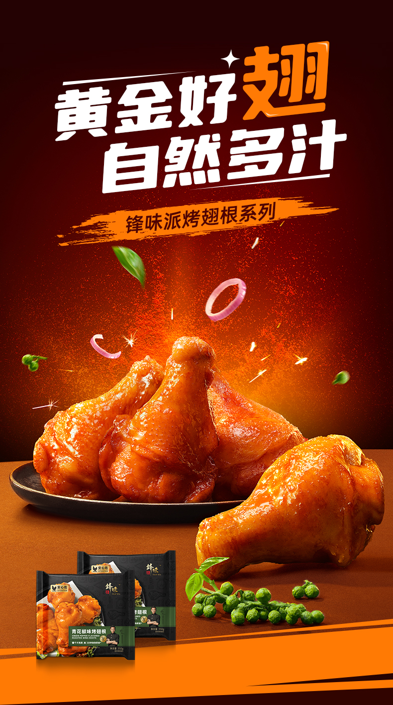 锋味派青花椒味烤翅根350g*3盒 拿铁色