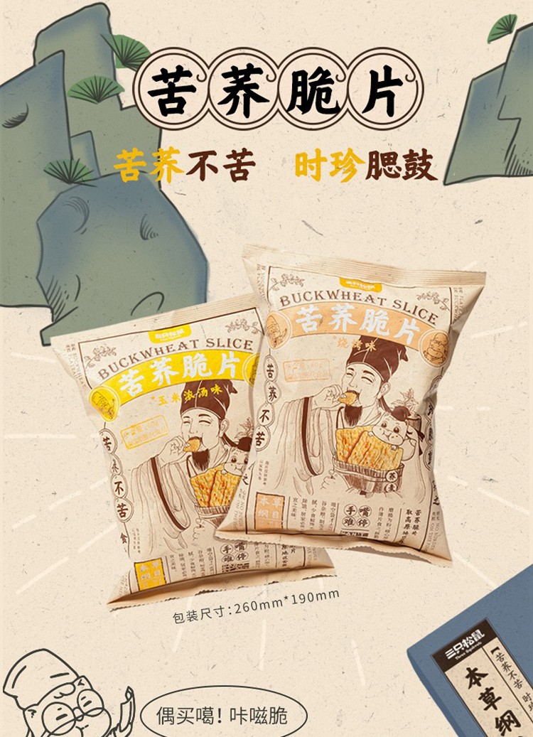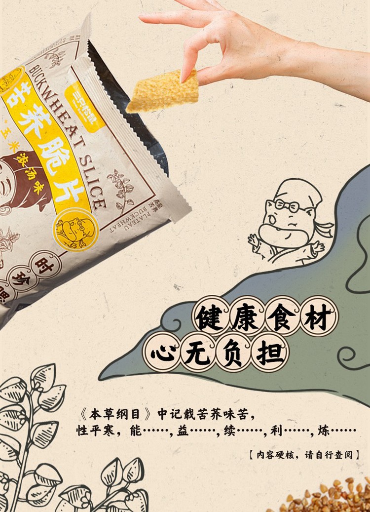 【三只松鼠】新食材_苦荞脆片/烧烤味/60g(单位:袋) 黄色