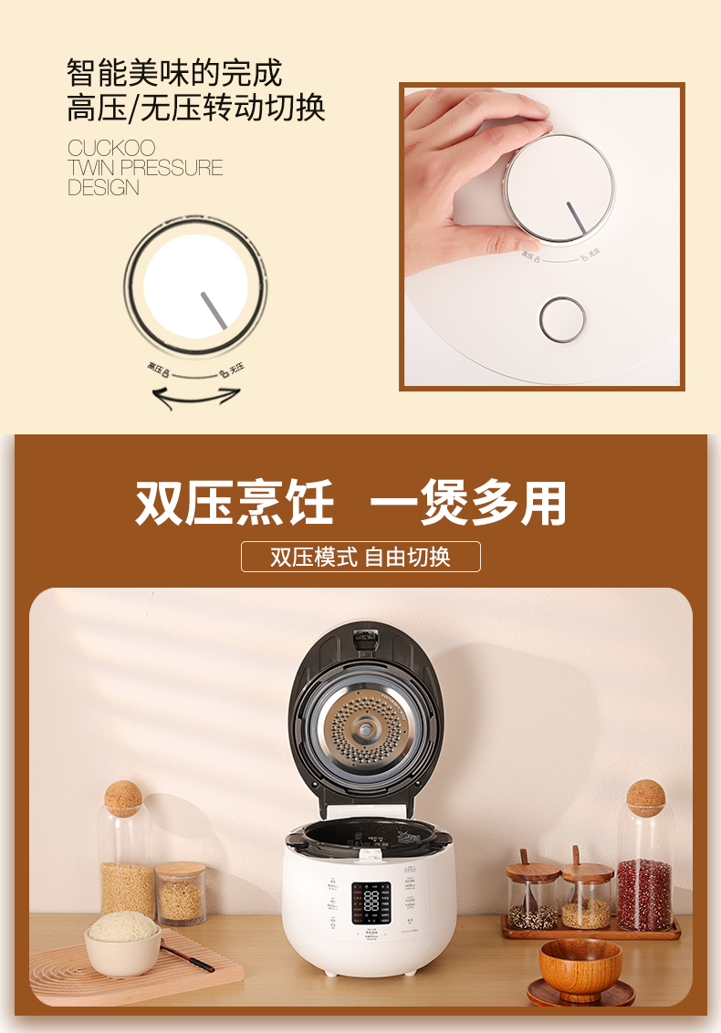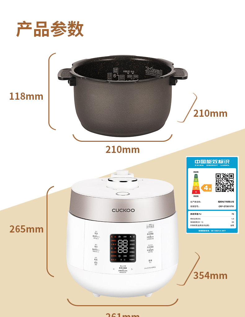 CUCKOO福库CRP-ST0611FW韩国原装进口智预约能双压不粘内胆电饭煲(单位:台) 白色
