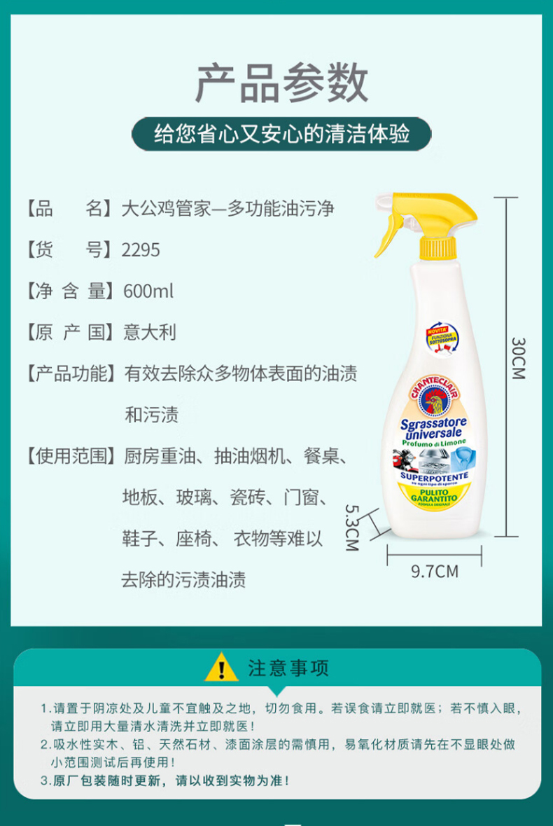 大公鸡管家多能油污净(柠檬香味)600ml*2(单位:瓶)
