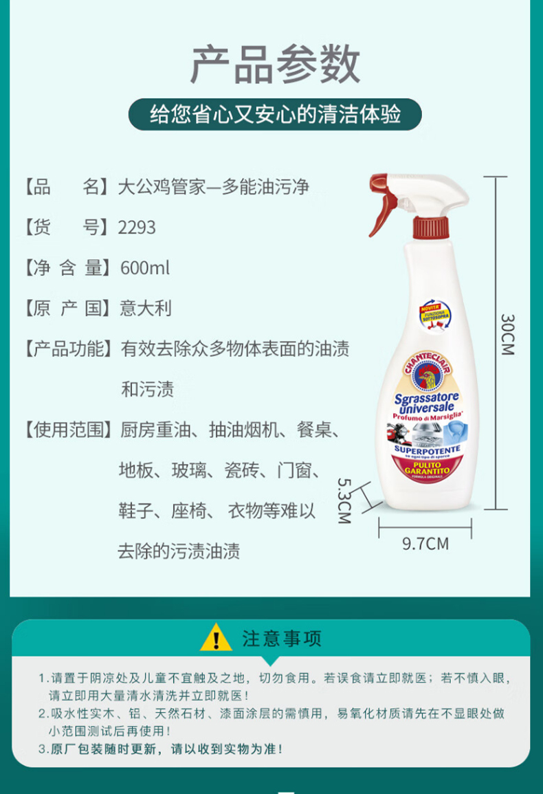 大公鸡管家多能油污净600ml*2(单位:瓶)