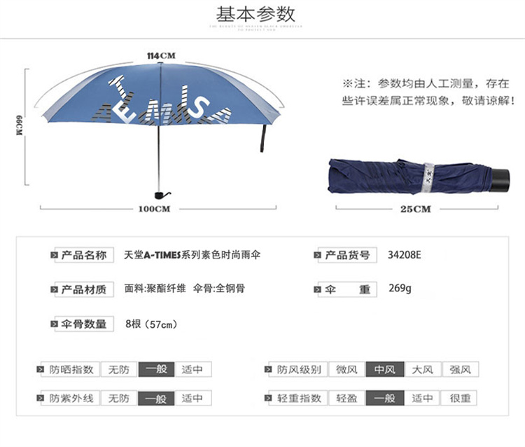 天堂(tiantang)雨伞 34208E 57cm*8K (单位:把) 藏青色