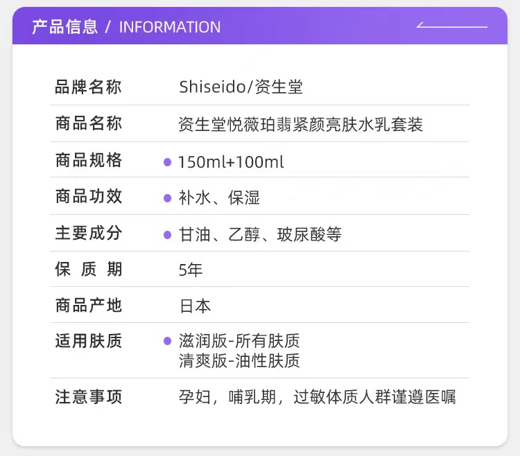 资生堂悦薇珀翡紧颜亮肤水150ml*1+乳100ml (含4个小样)黄色(单位:瓶) 本白色