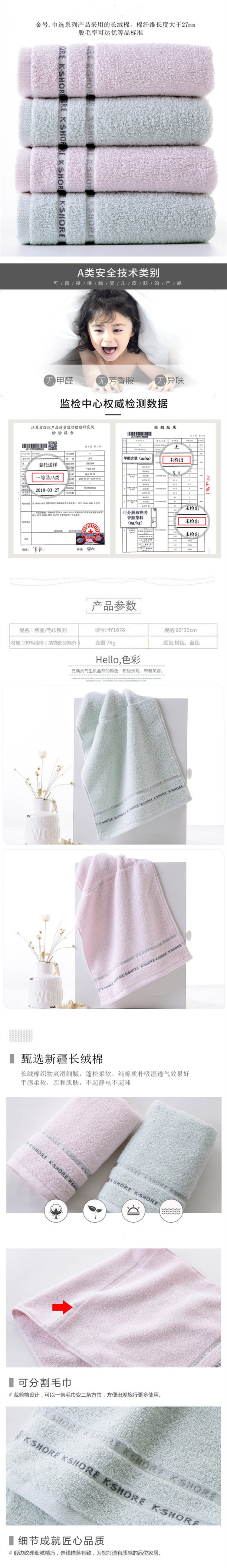 金号(KING SHORE)三条毛巾袋装 HY1678 60*30cm(单位:袋) 粉蓝混色