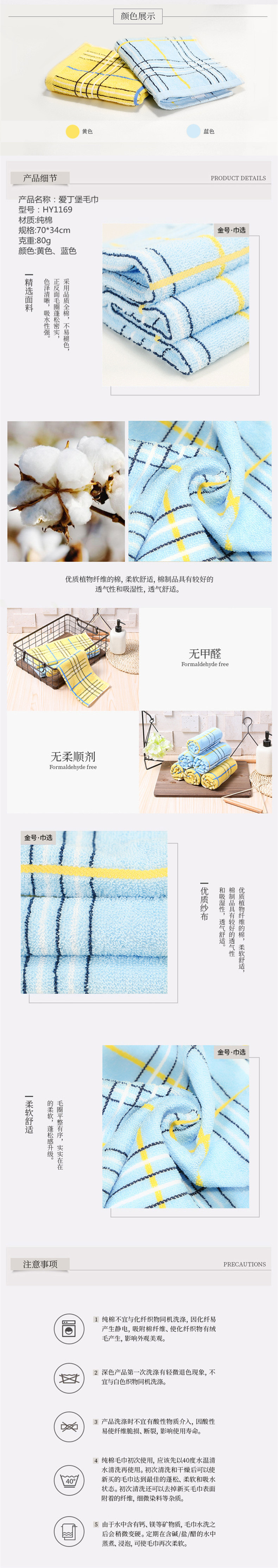 金号(KING SHORE)三条毛巾巾选袋装 HY1169 纯棉 70*34cm(单位:袋) 黄蓝混色