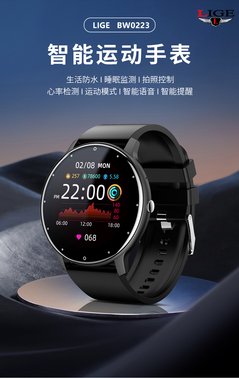 LIGE利格智能健康通话手表BW0223B蓝色(单位:只) BW0223B蓝色