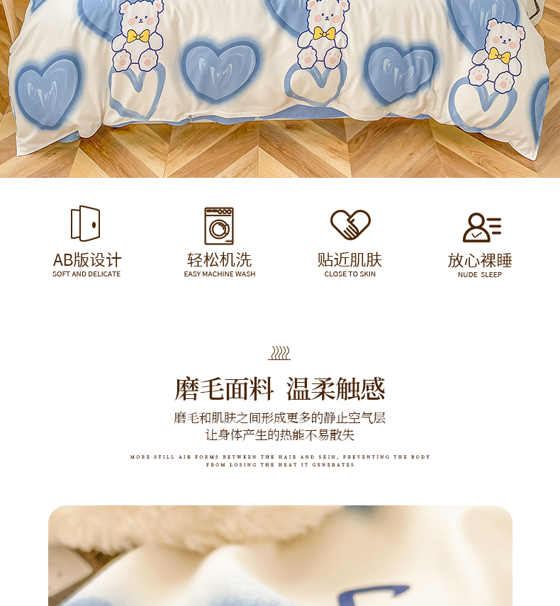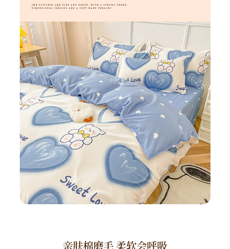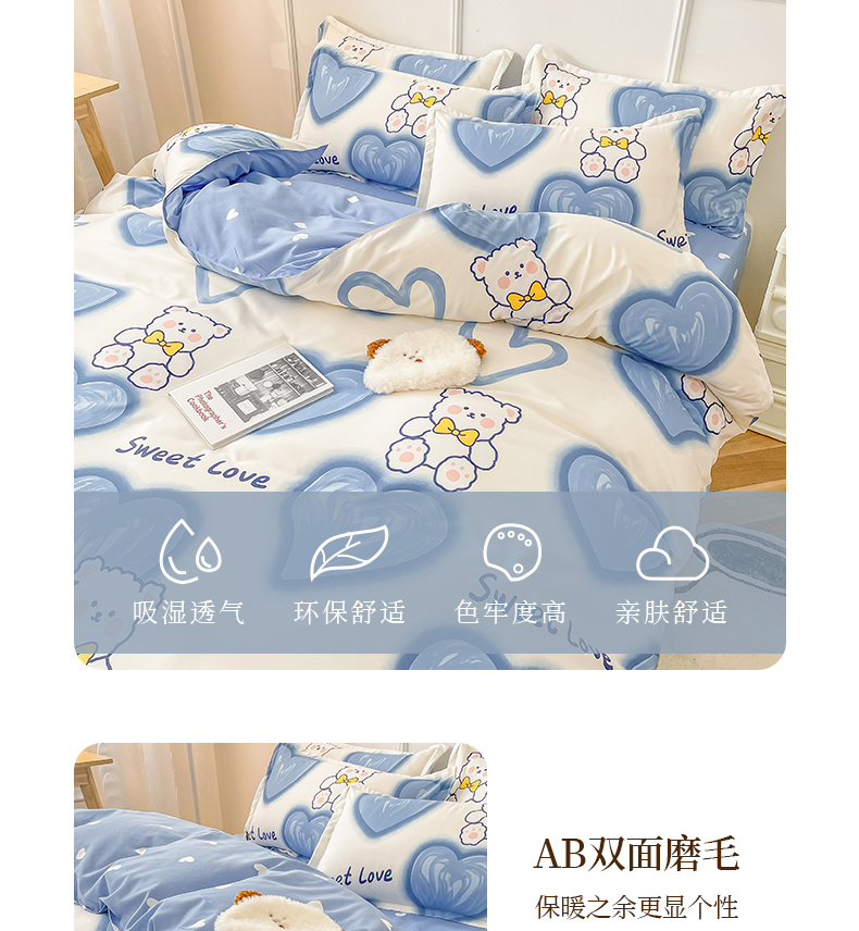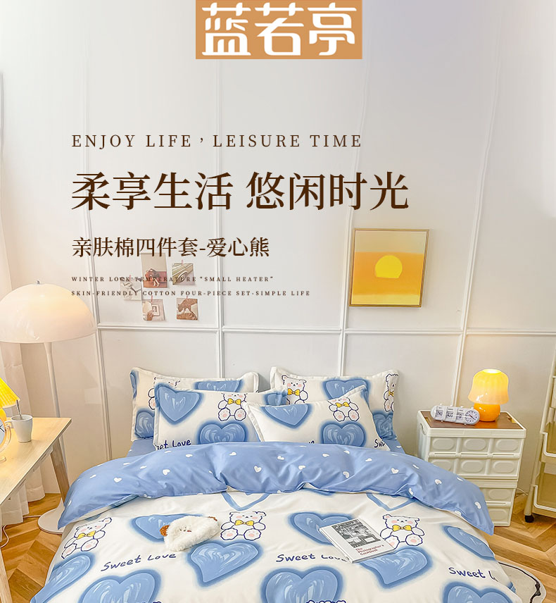 蓝若亭 LRT-FJ0017Y 亲肤棉四件套-爱心熊200*230cm(单位:套) 蓝白色