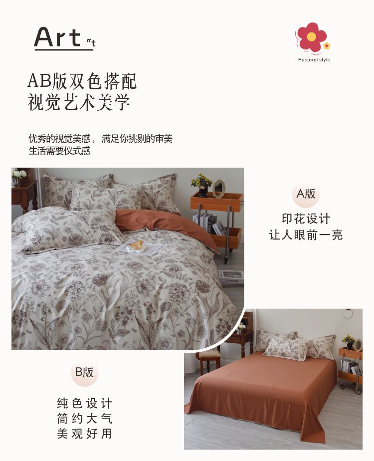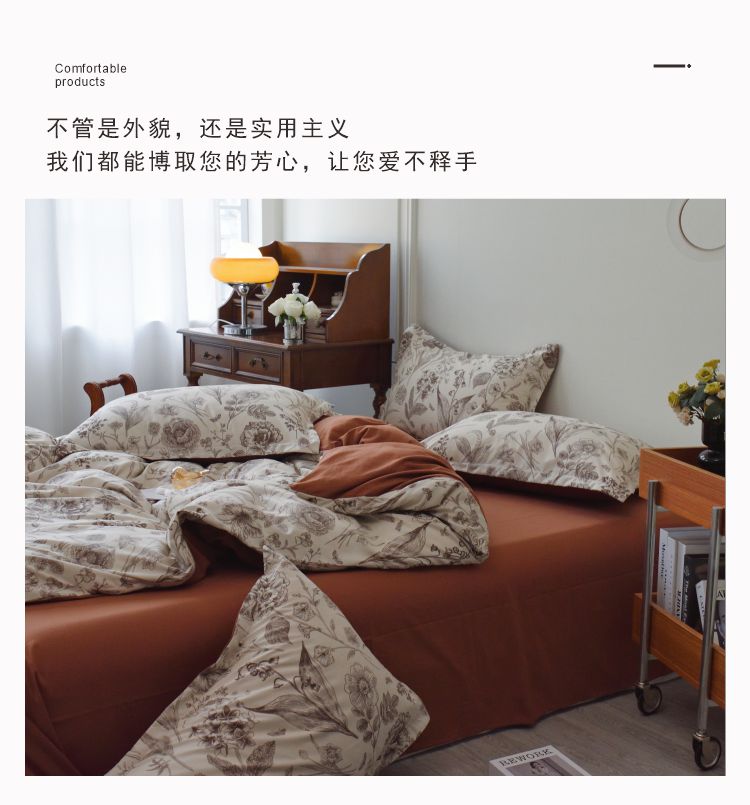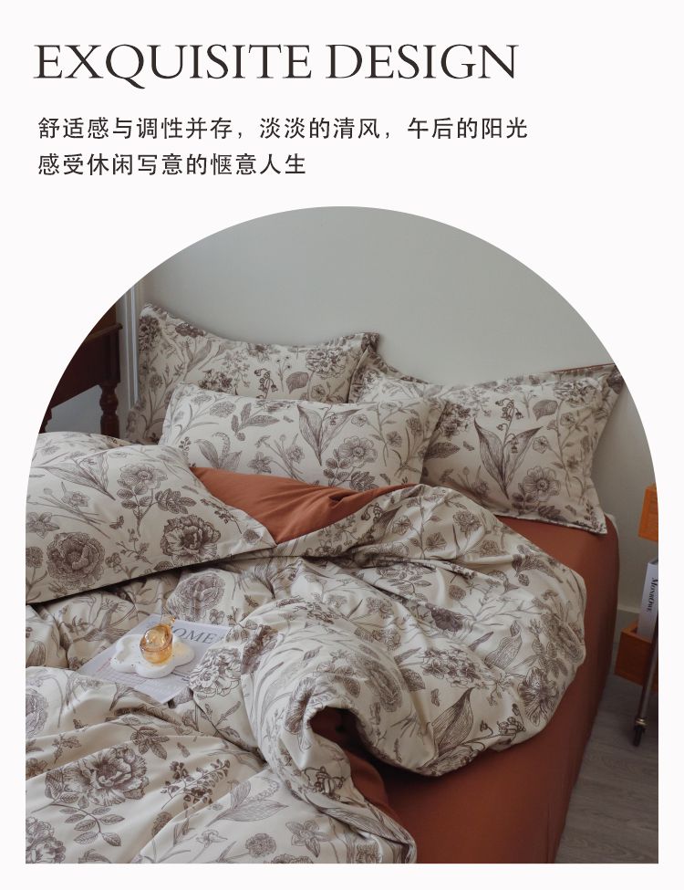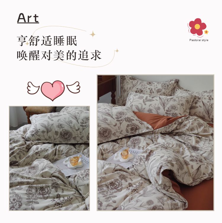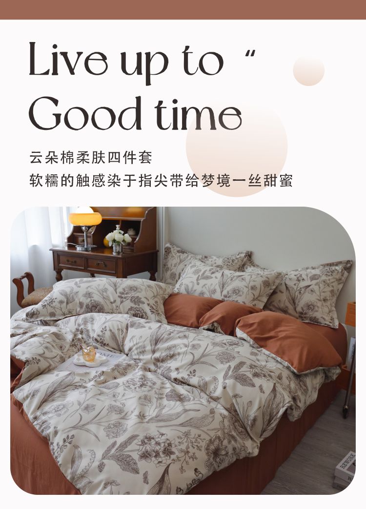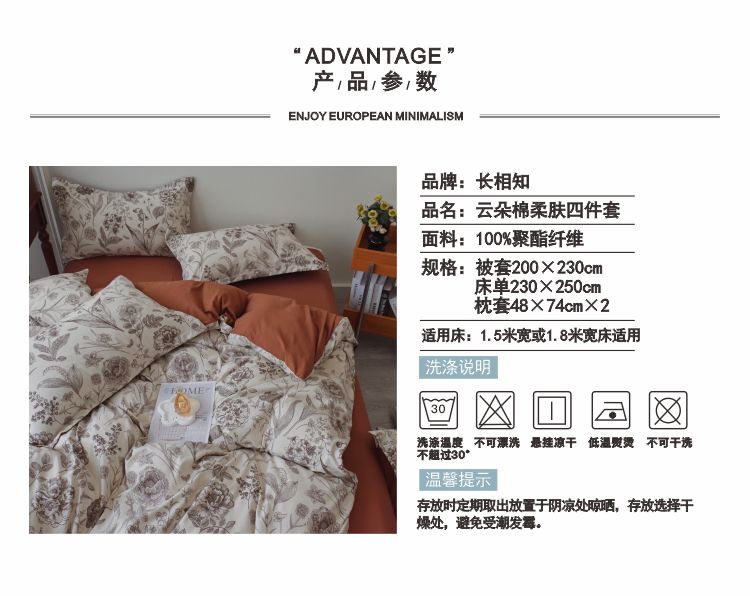 长相知-云朵棉柔肤四件套(单位:套) 倾城花语 1.5/1.8米床200*230cm