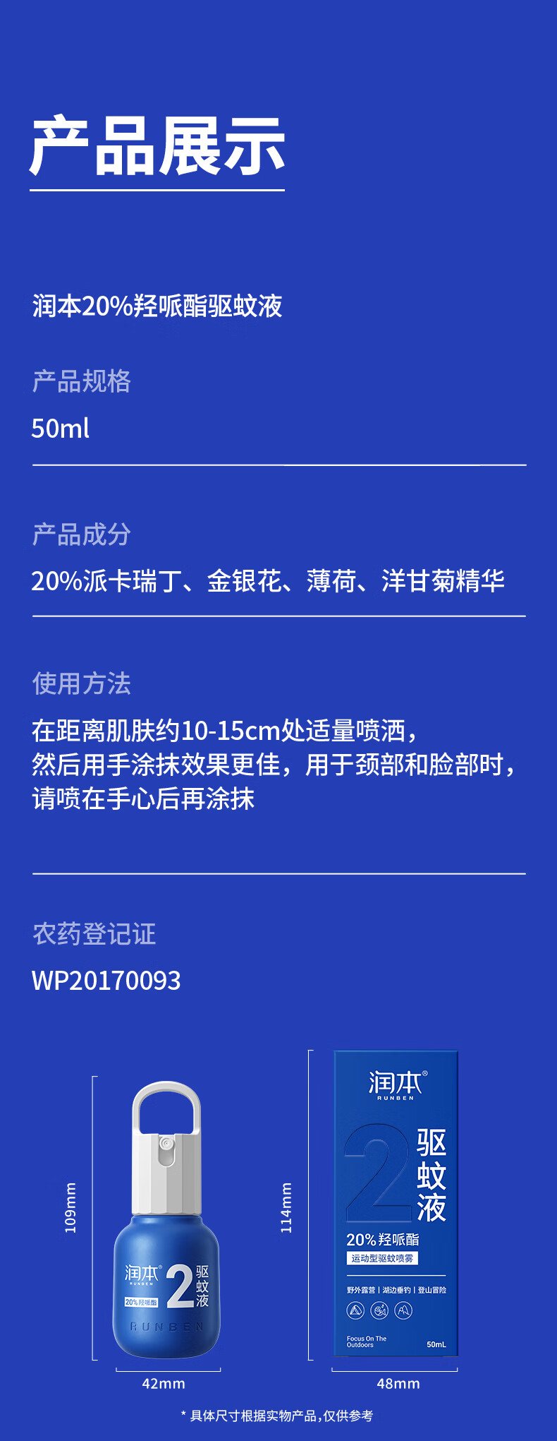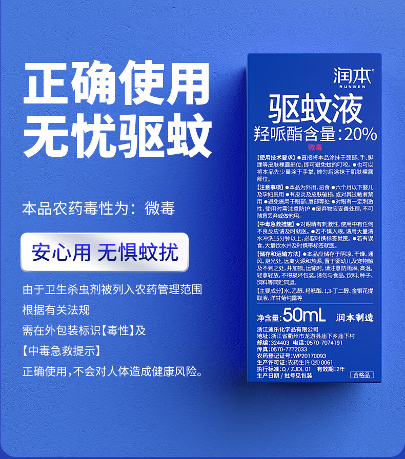 润本(RUNBEN)驱蚊液驱蚊喷雾羟哌酯驱蚊液-煤气罐款50ml-20%/瓶 规格