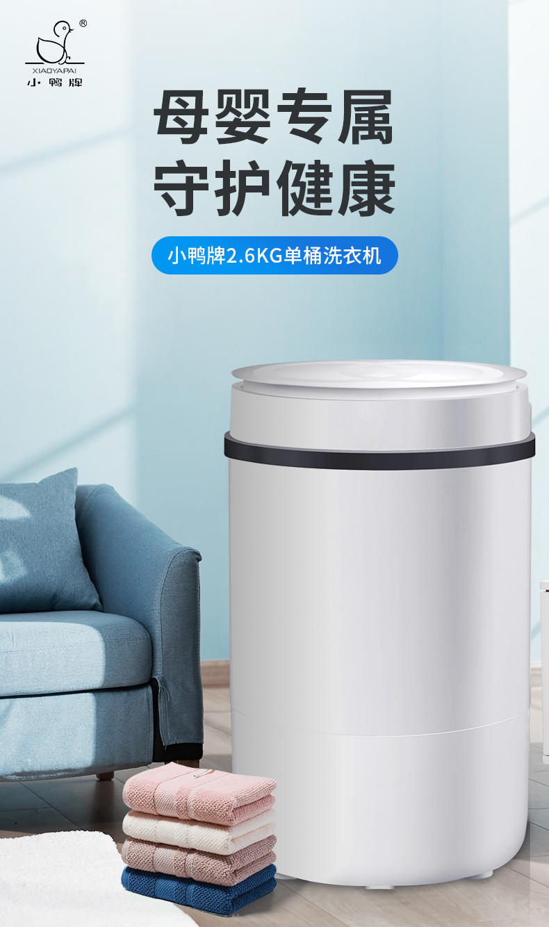 小鸭迷你洗衣机小型 内衣裤洗袜子神器母婴儿童单身半自动洗衣机 WPF2688T 2.6公斤 单位:台 白色