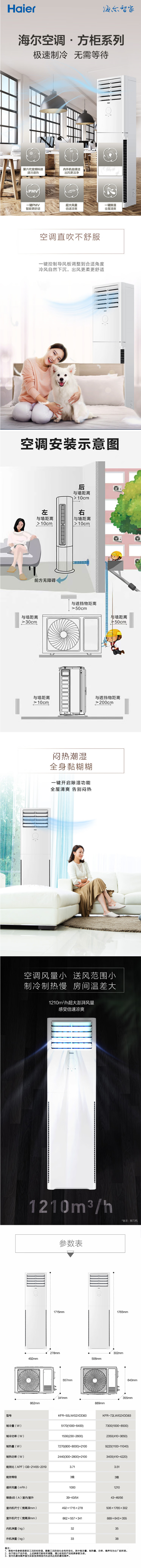 海尔(Haier)KFR-72LW/02XDD83 三级能效 方形3匹变频冷暖立柜式空调单位:台 白色