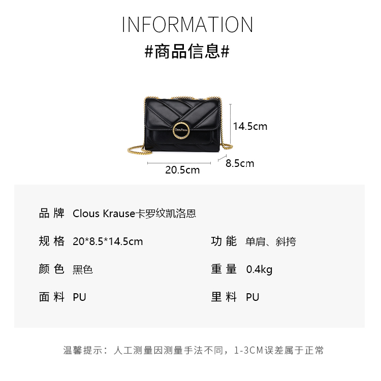 clous krause女士单肩斜挎包91338671(单位:个) 黑色