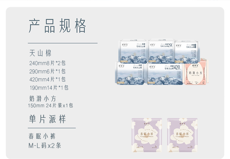 她研社新疆雪域天山棉卫生巾套装 超薄日夜组合6包64片+春眠小裤M-L码×2条(单位:包) 白色