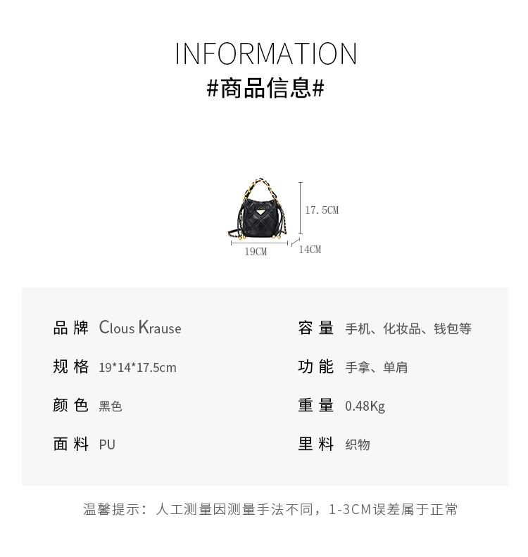 clous krause水桶包 黑色9133867201(单位:个) 黑色