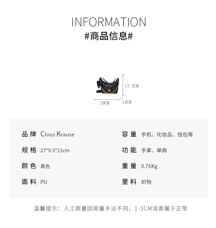 clous krause流浪包黑色FFNF1670(单位:个) 黑色