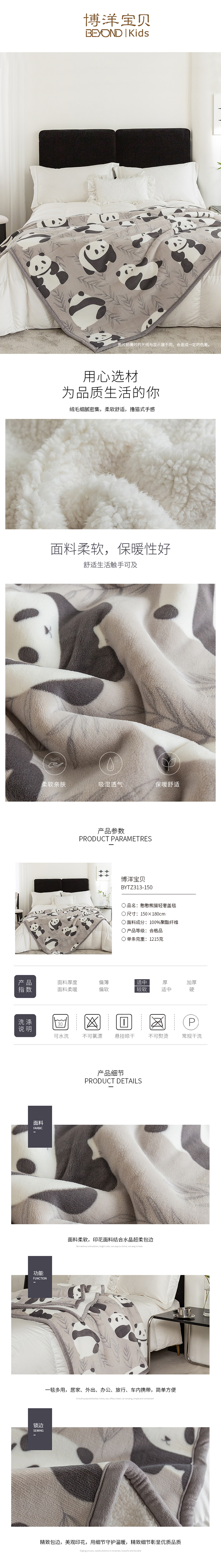 Beyond Kids/博洋宝贝 BYTZ313-150 憨憨熊猫轻奢盖毯(单位:床) 图片色