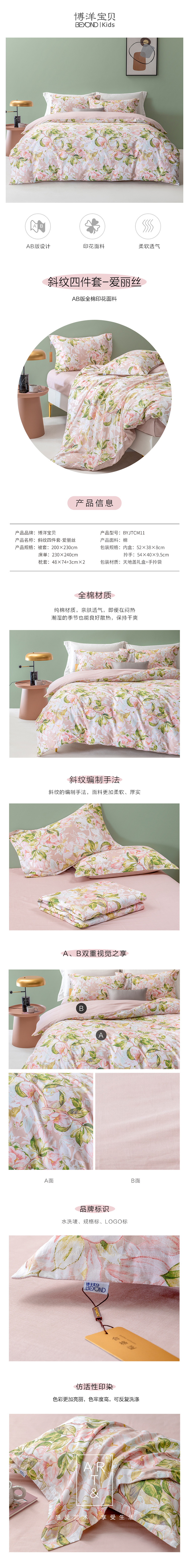 Beyond Kids/博洋宝贝 BYJTCM11 斜纹四件套-爱丽丝(单位:套) 图片色