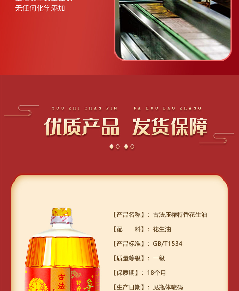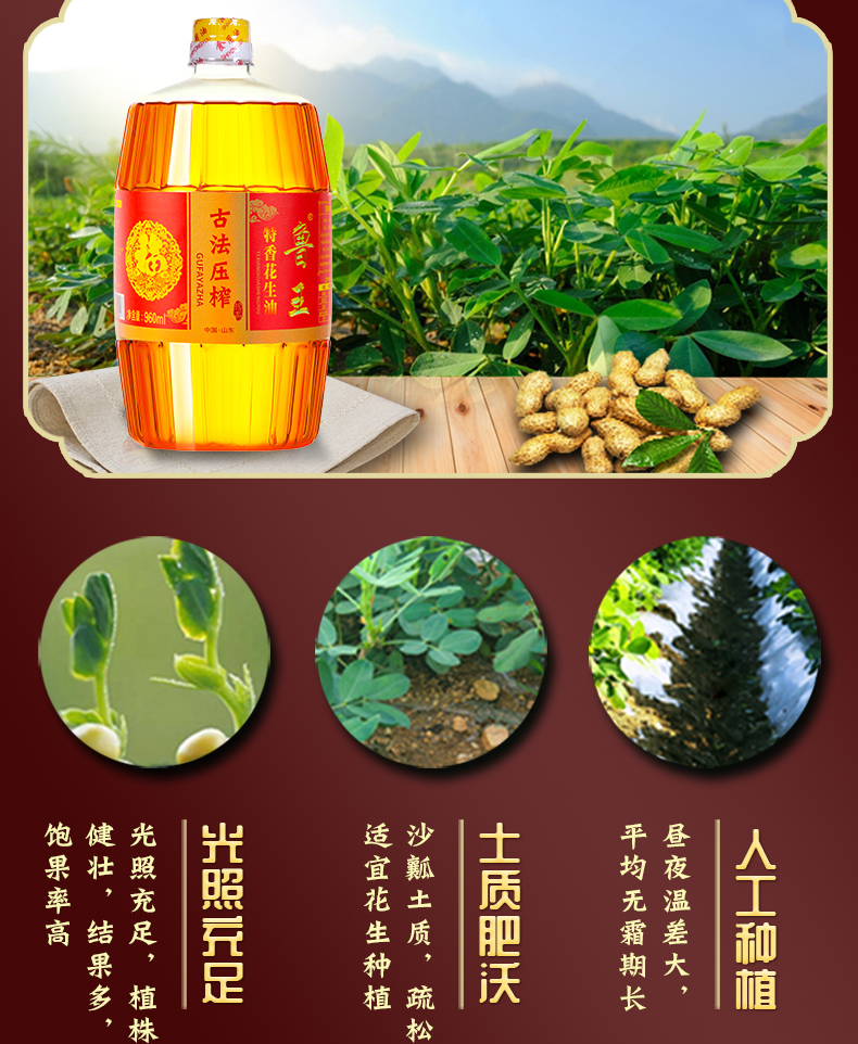 鲁王古法压榨特香花生油 红色 960ml*2