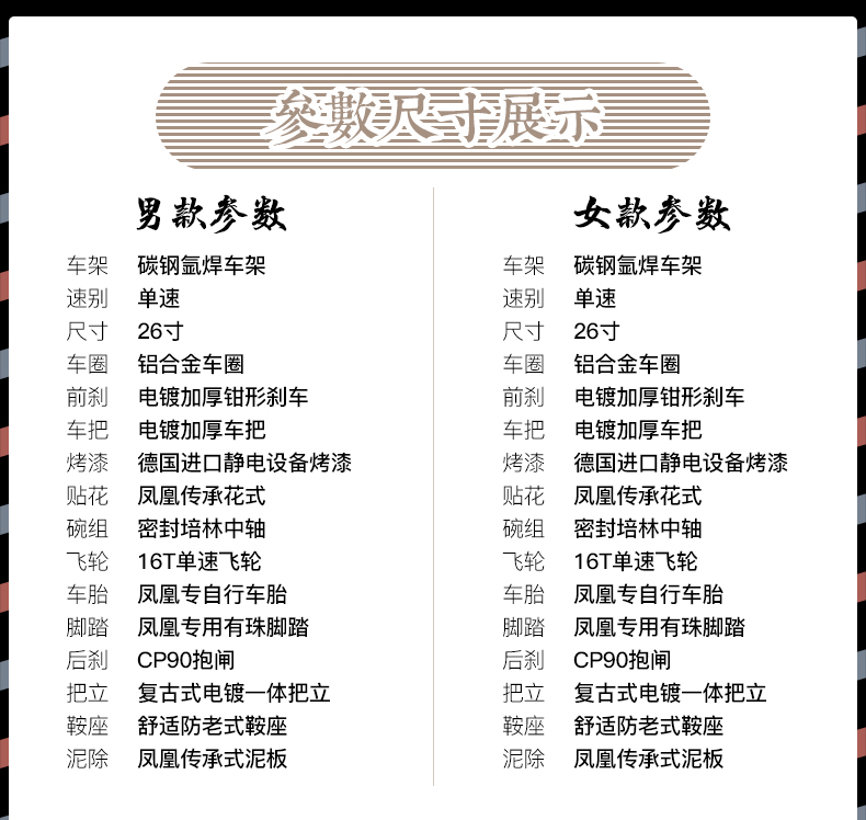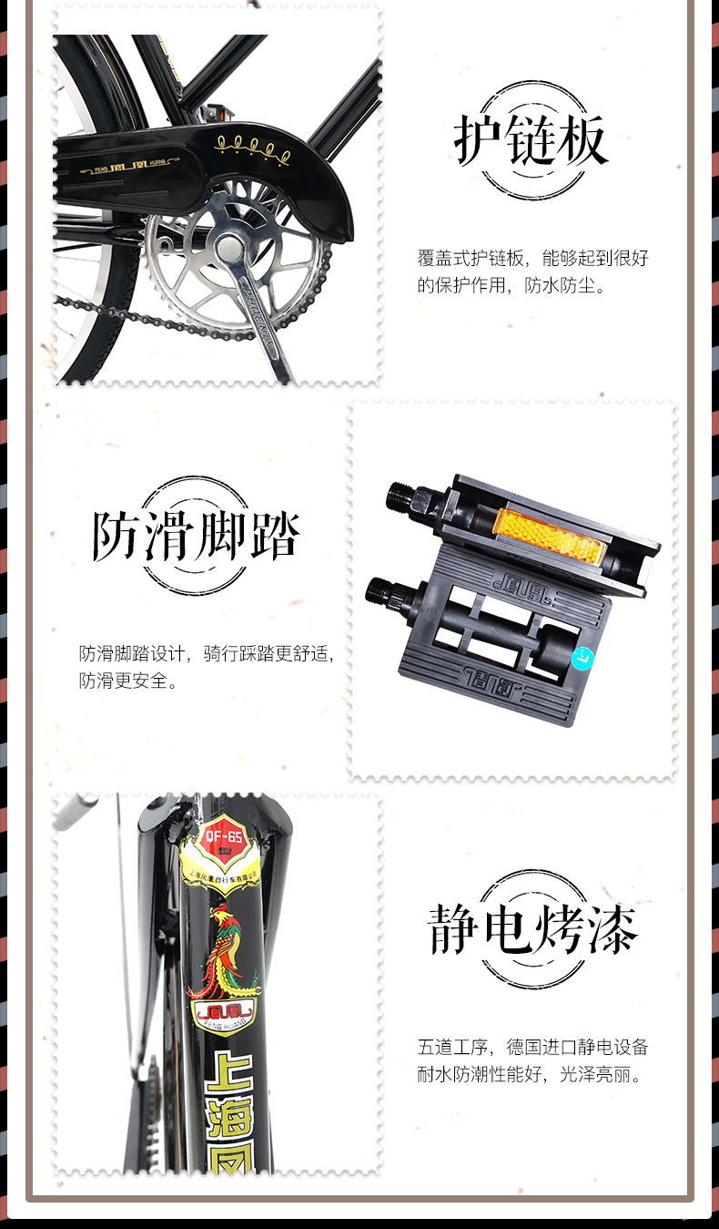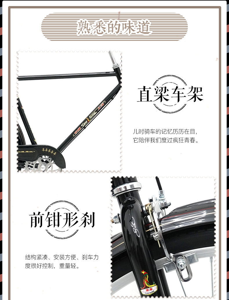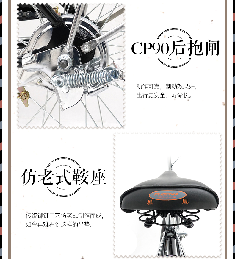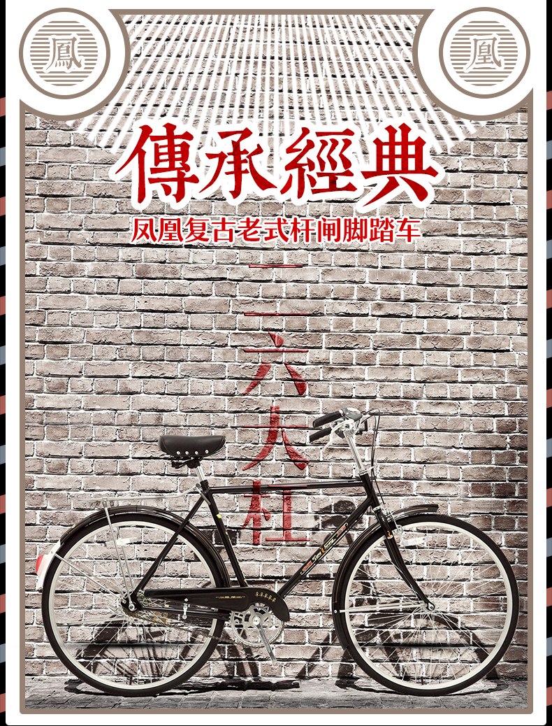 凤凰(Phoenix) 复古二八大杠自行车26寸通勤单车-QE65-3.0/辆 黑色
