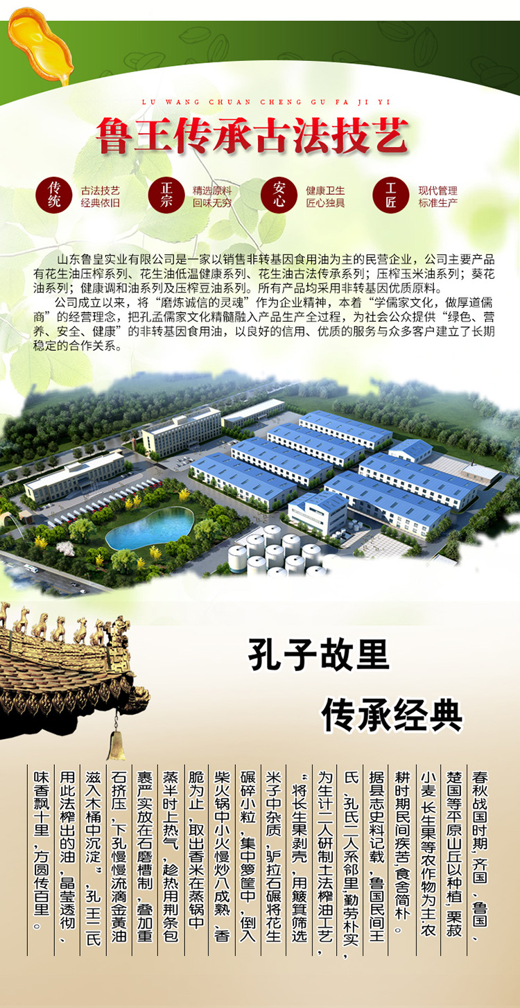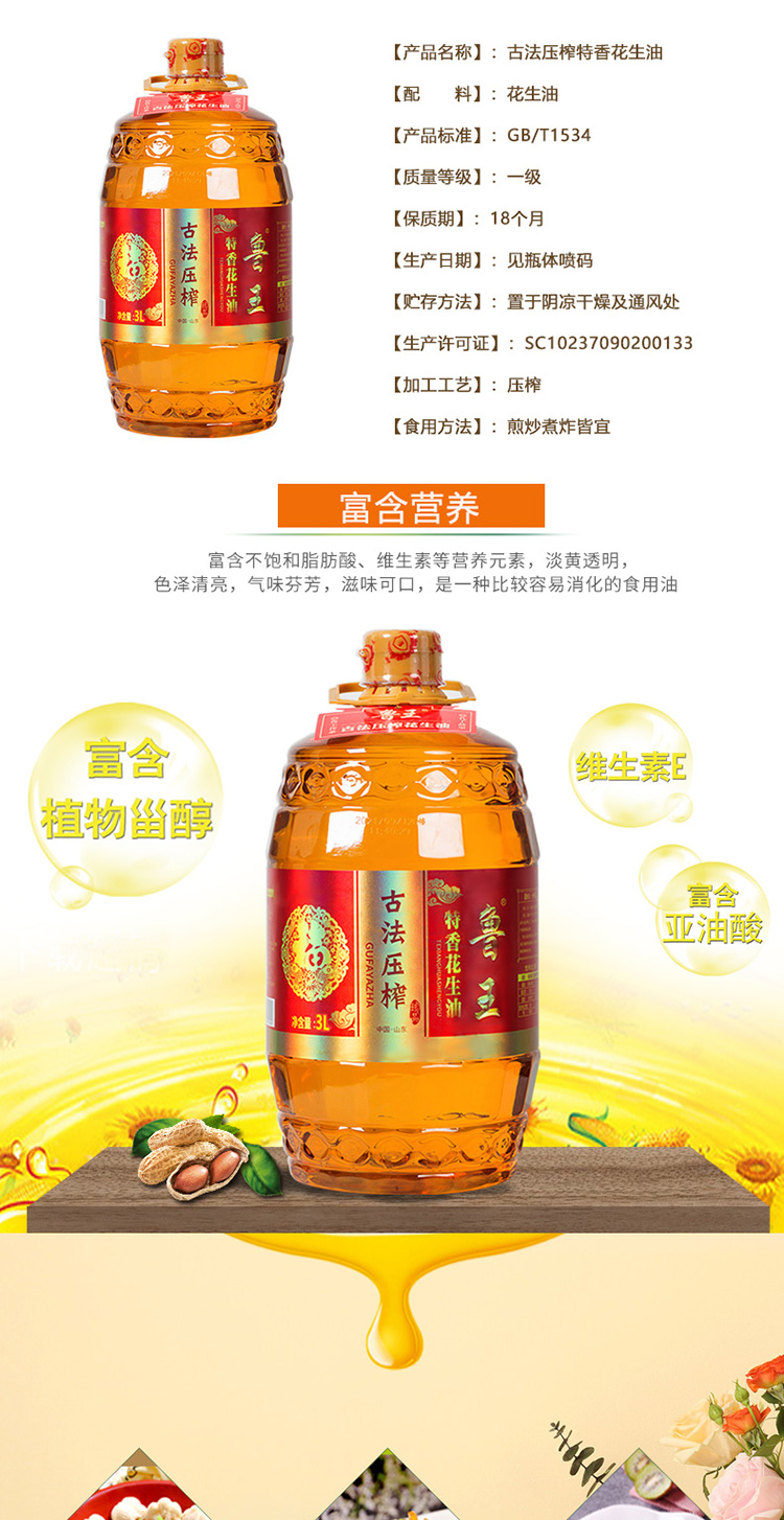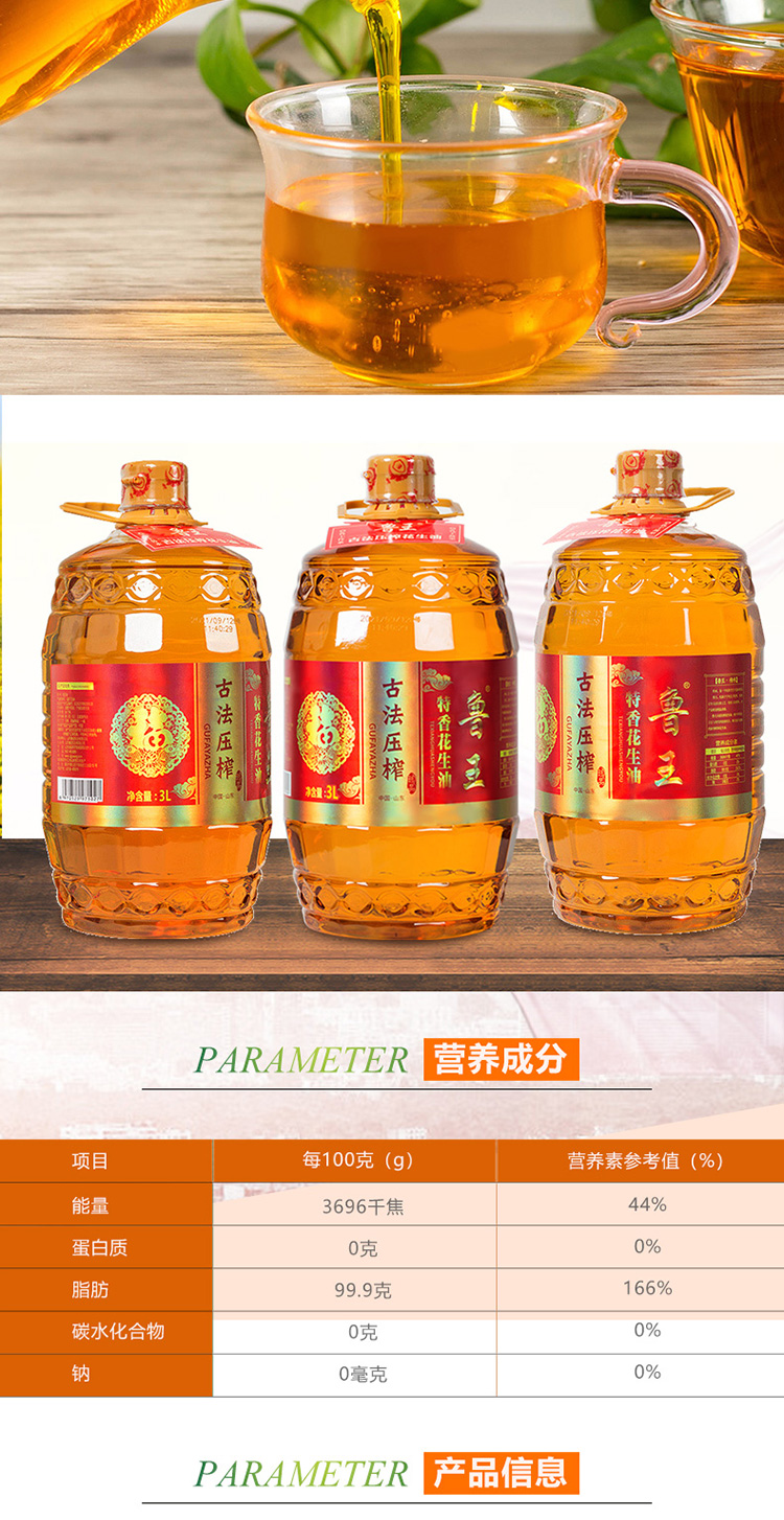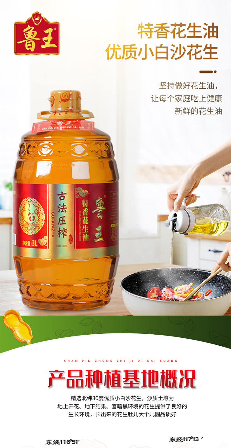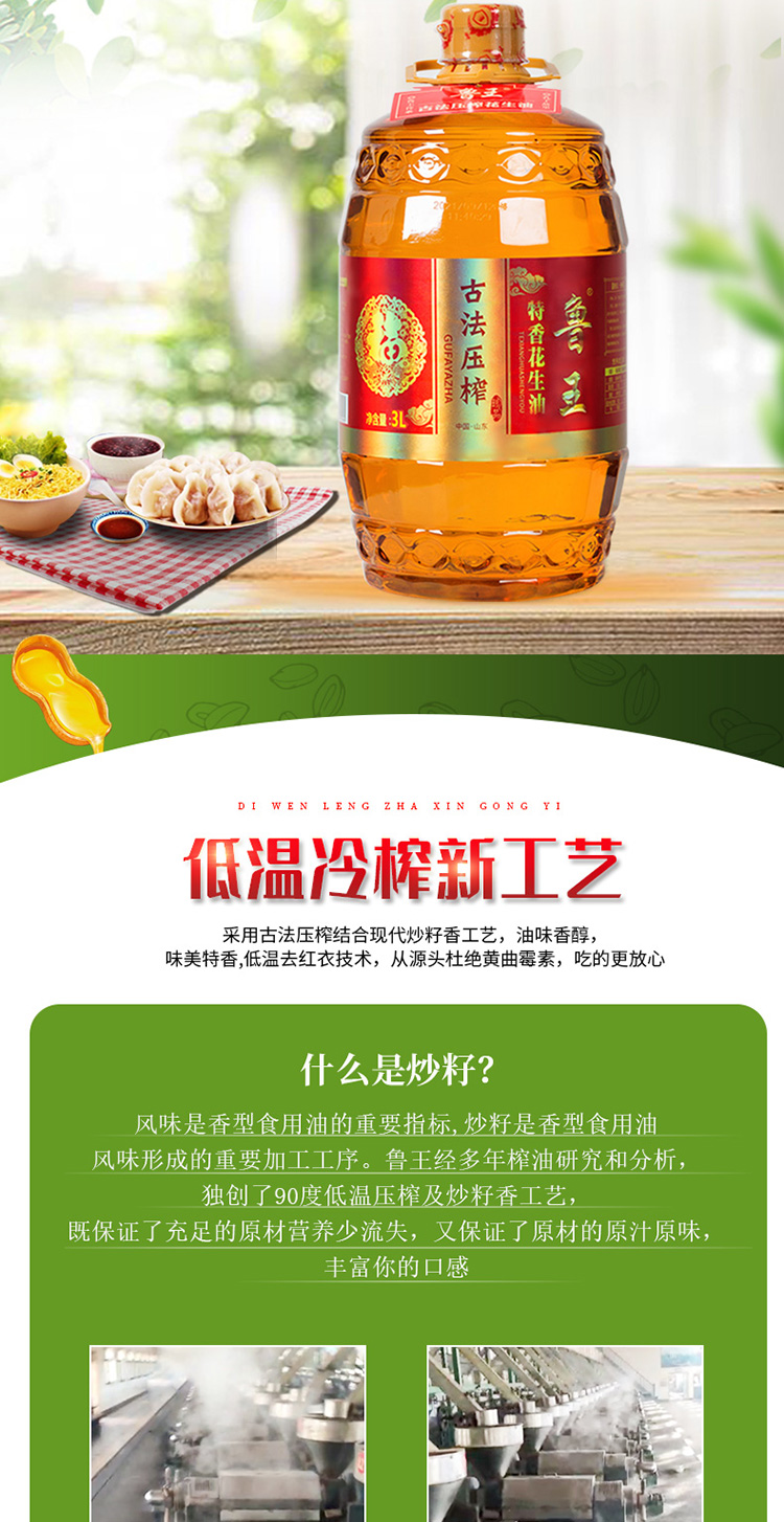 鲁王古法压榨特香花生油 红色 3L