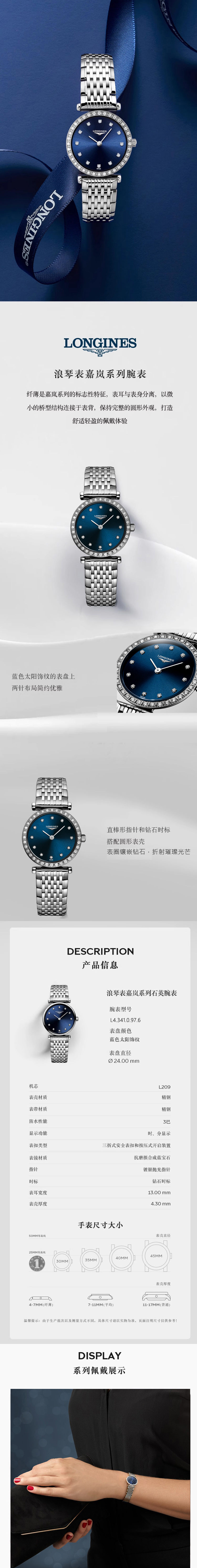 浪琴Longines 嘉岚系列石英手表女表 L4.341.0.97.6(单位1块) 蓝色