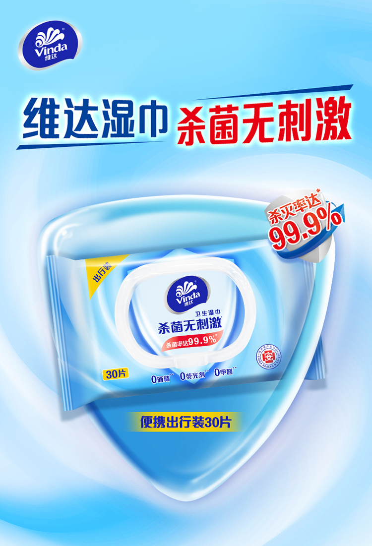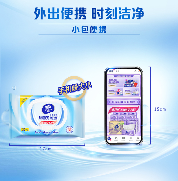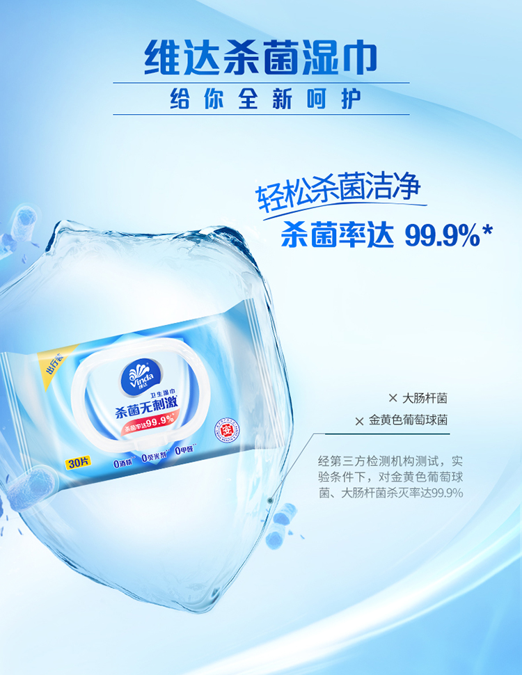 维达杀菌湿巾30片/包VW1037 天蓝色