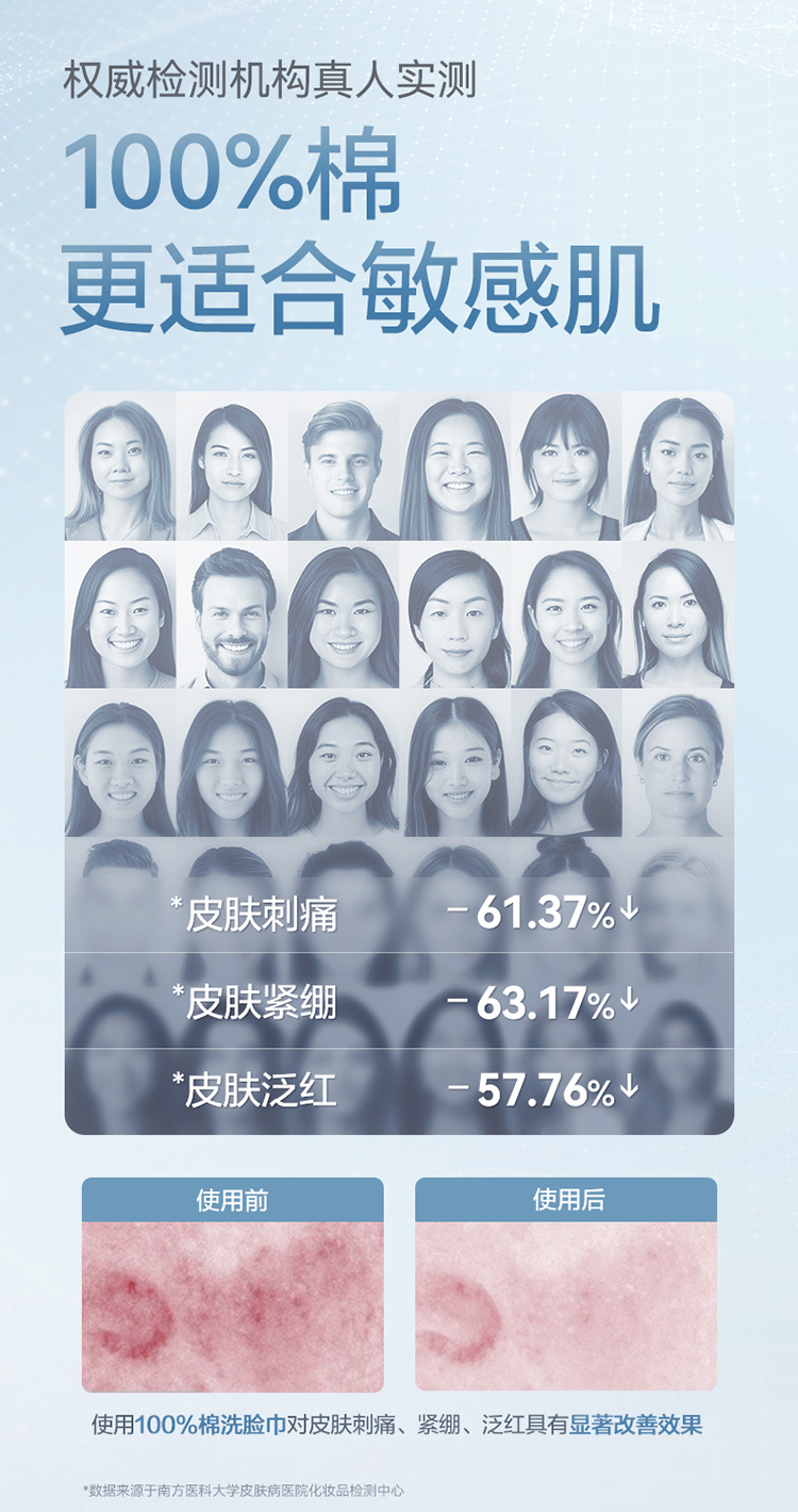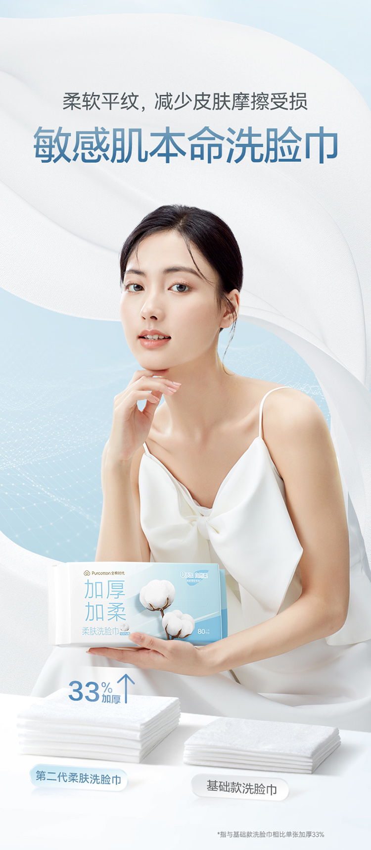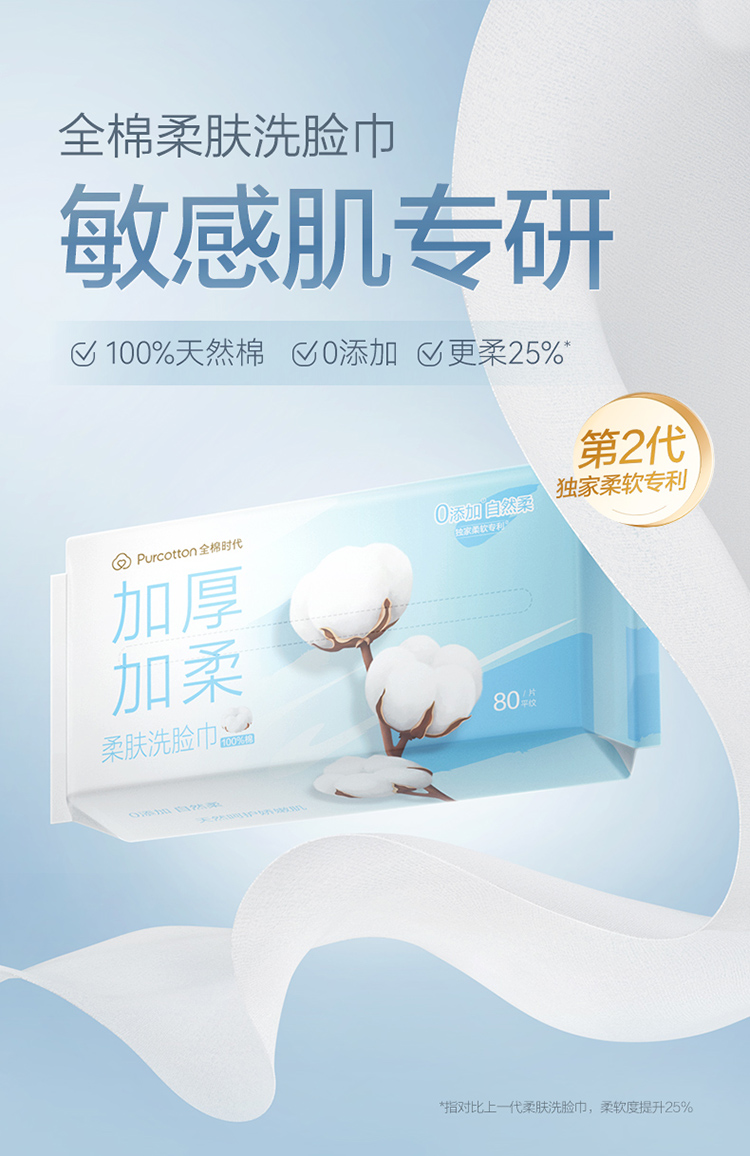 全棉时代全棉柔肤洗脸巾200mm*200mm 80片/包(单位:包) 白色