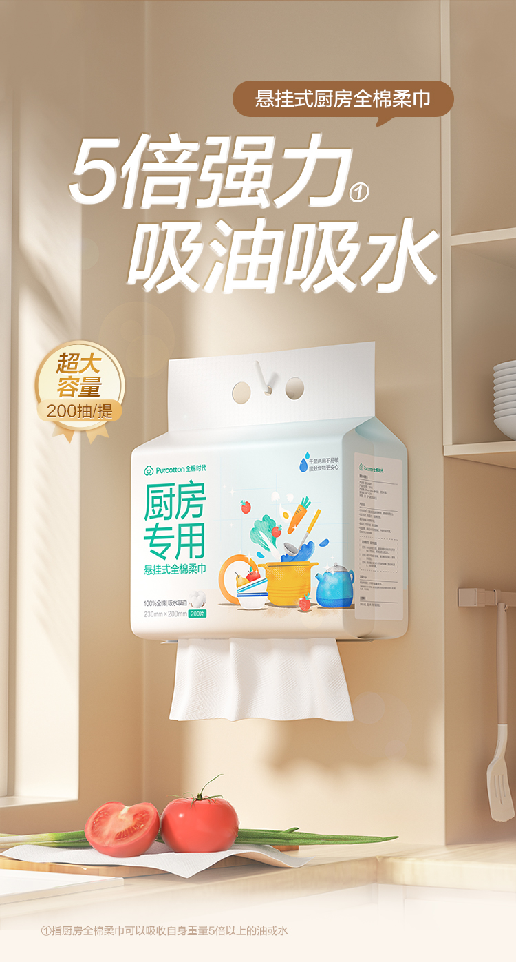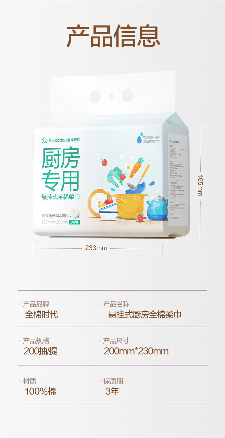 全棉时代厨房全棉柔巾230mm×200mm 200片/包 白色