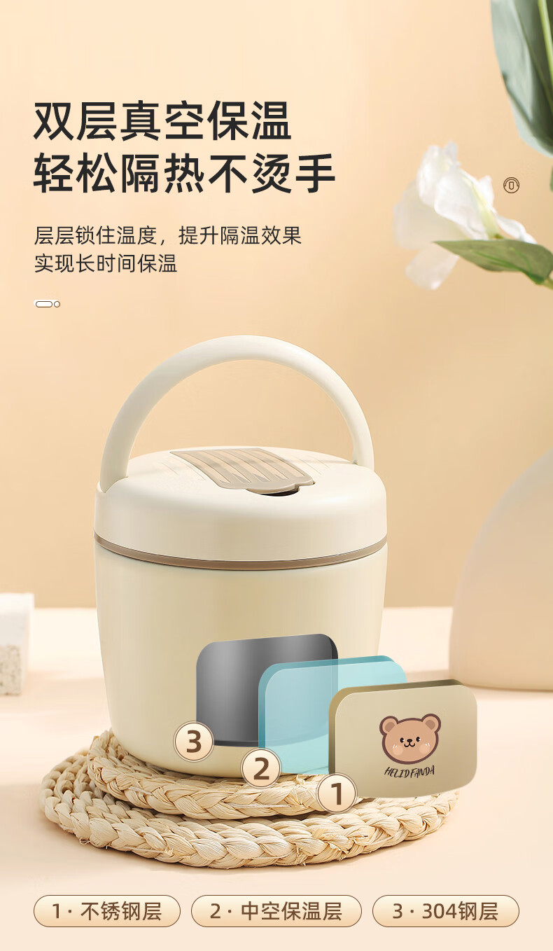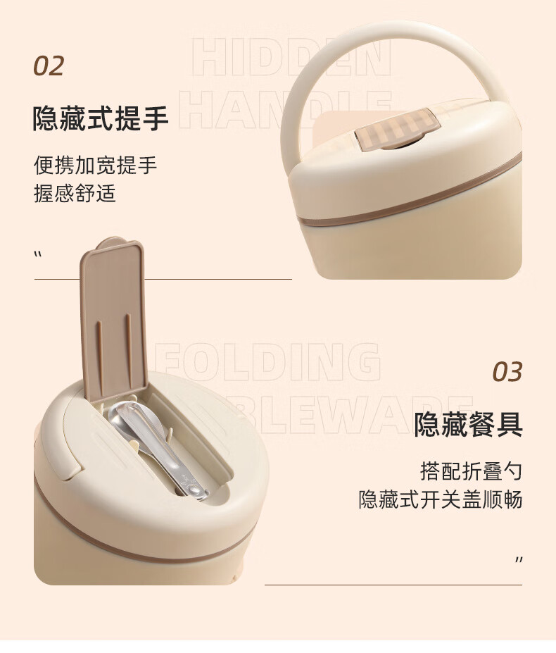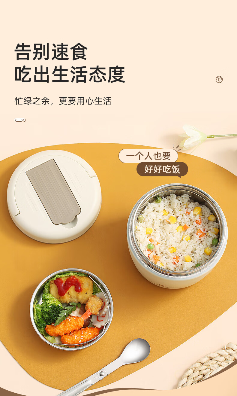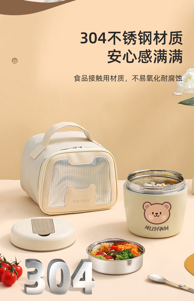 沃德百惠(WORTHBUY) A07903-J3 不锈钢保温饭盒 保温桶(单位:个) 米白色