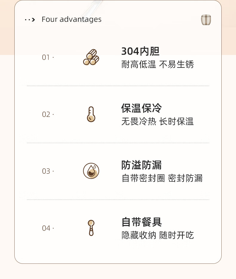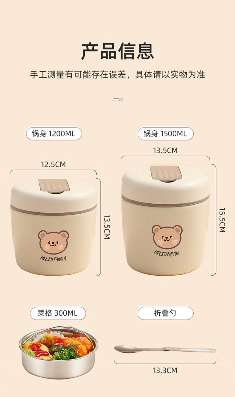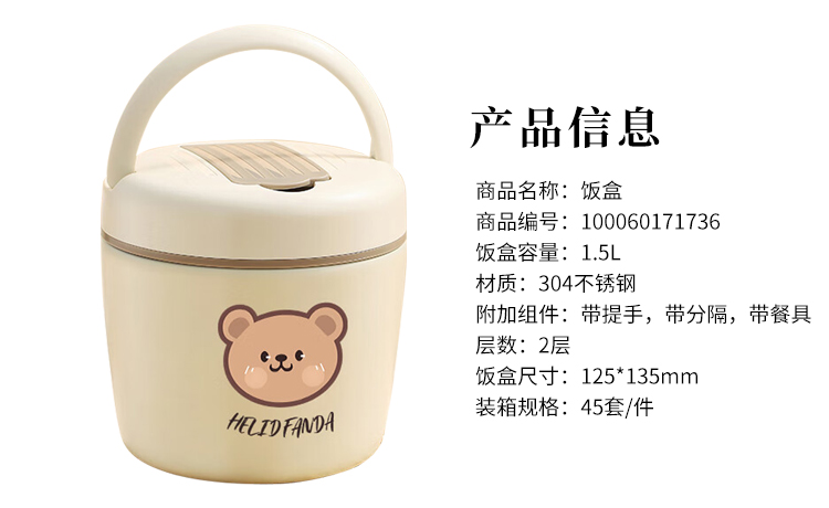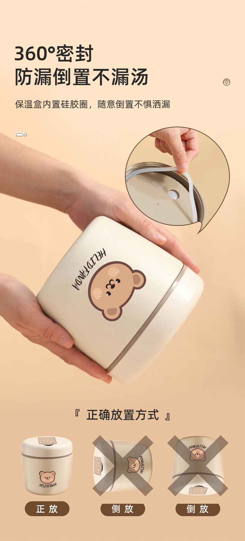 沃德百惠(WORTHBUY) A07903-J3 不锈钢保温饭盒 保温桶(单位:个) 米白色
