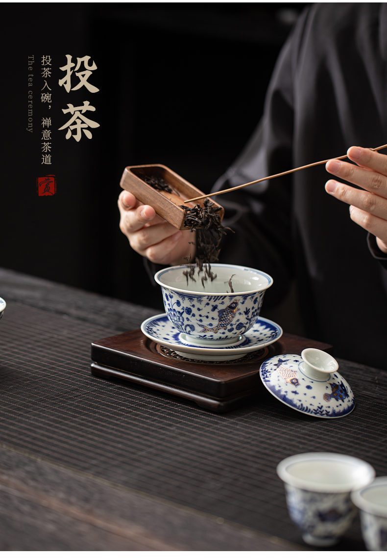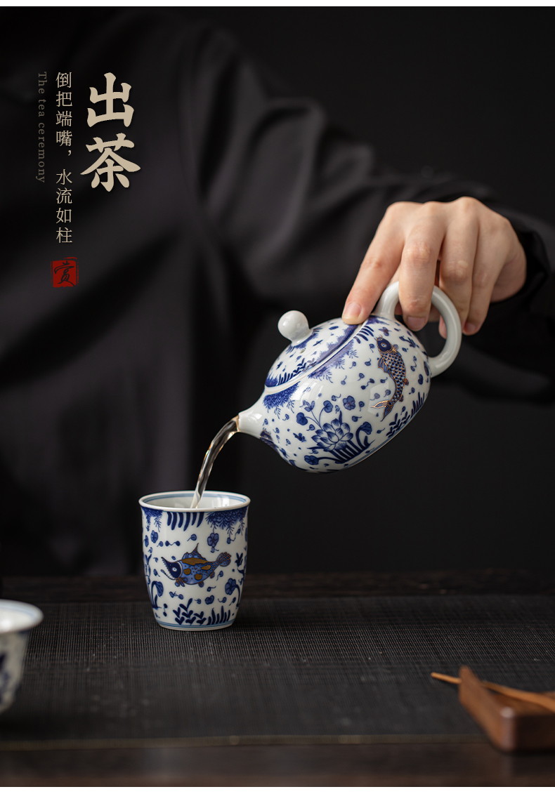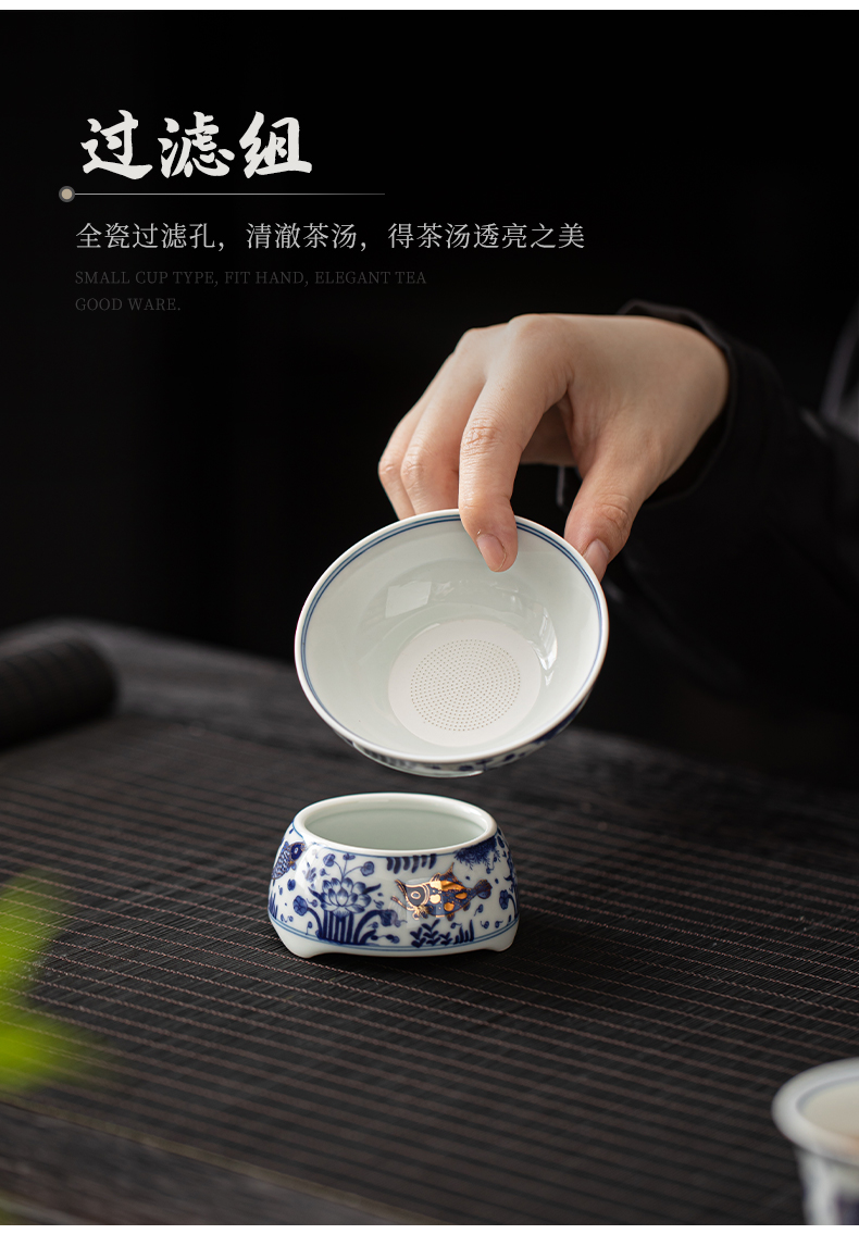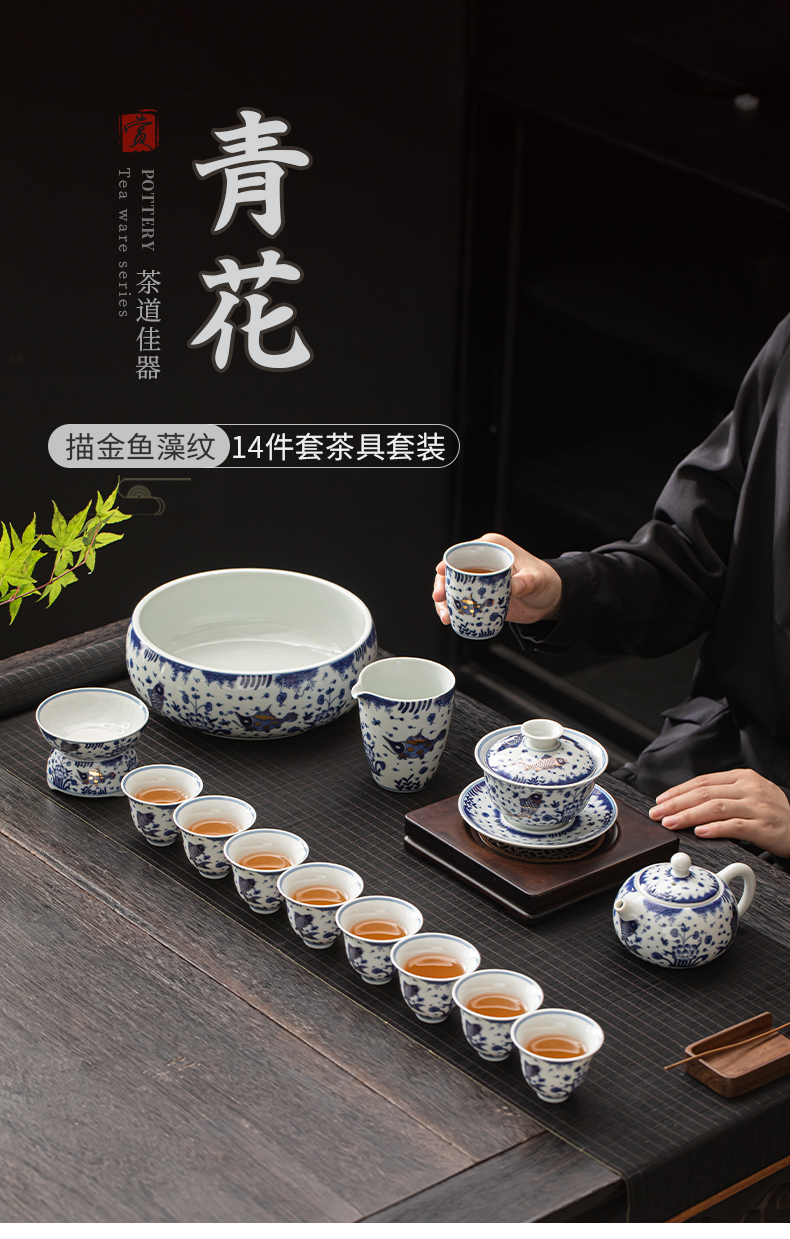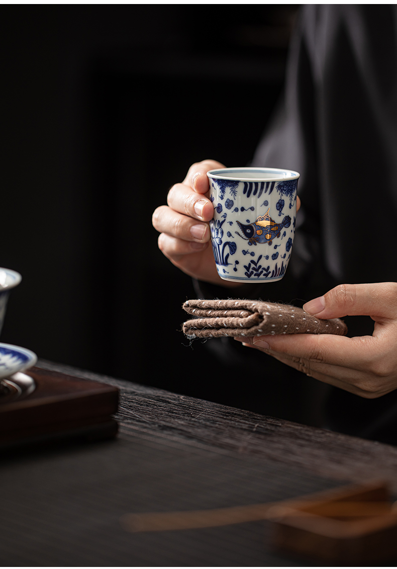 苏氏陶瓷(SUSHI CERAMICJS) 1071柴窑青花描金鱼藻纹非遗大师苏爱珍作品(单位:套) 白色
