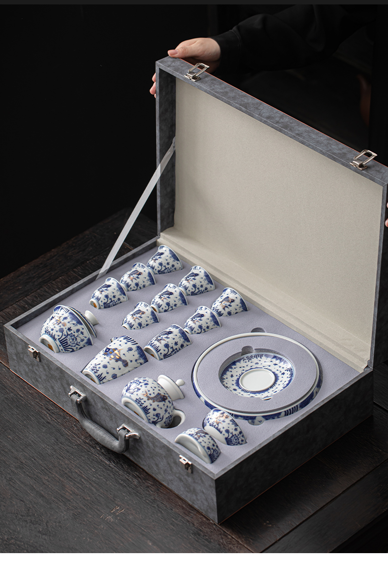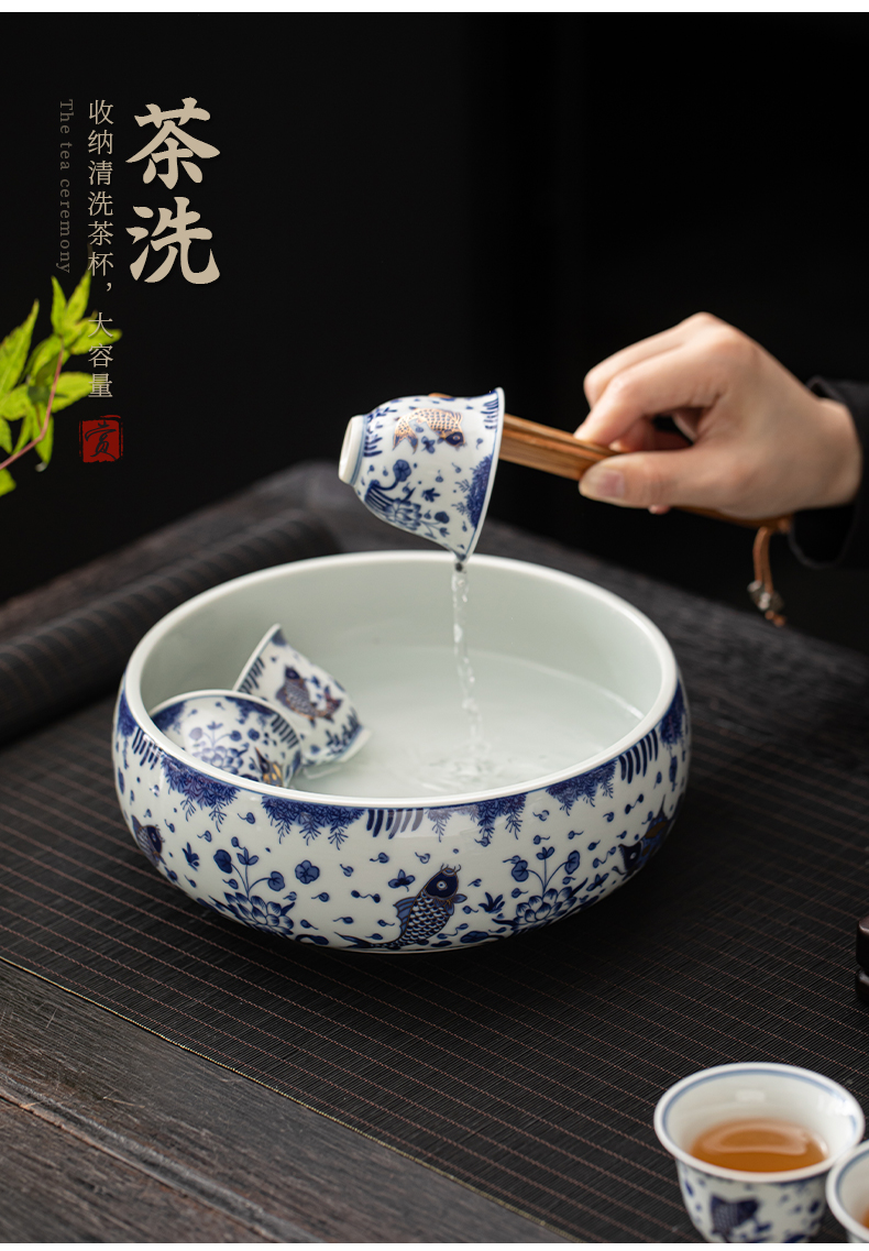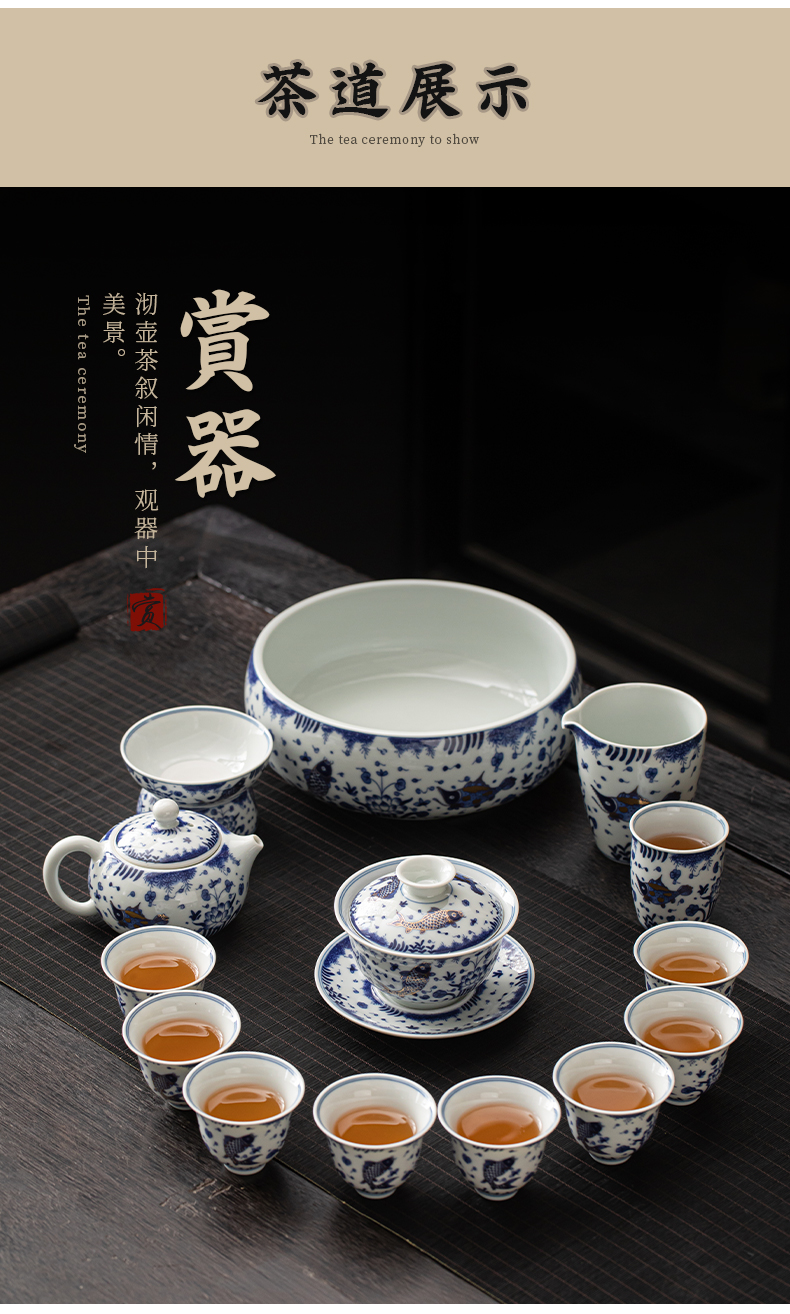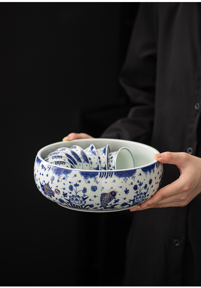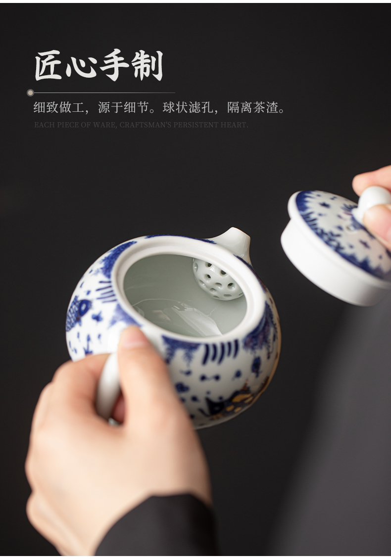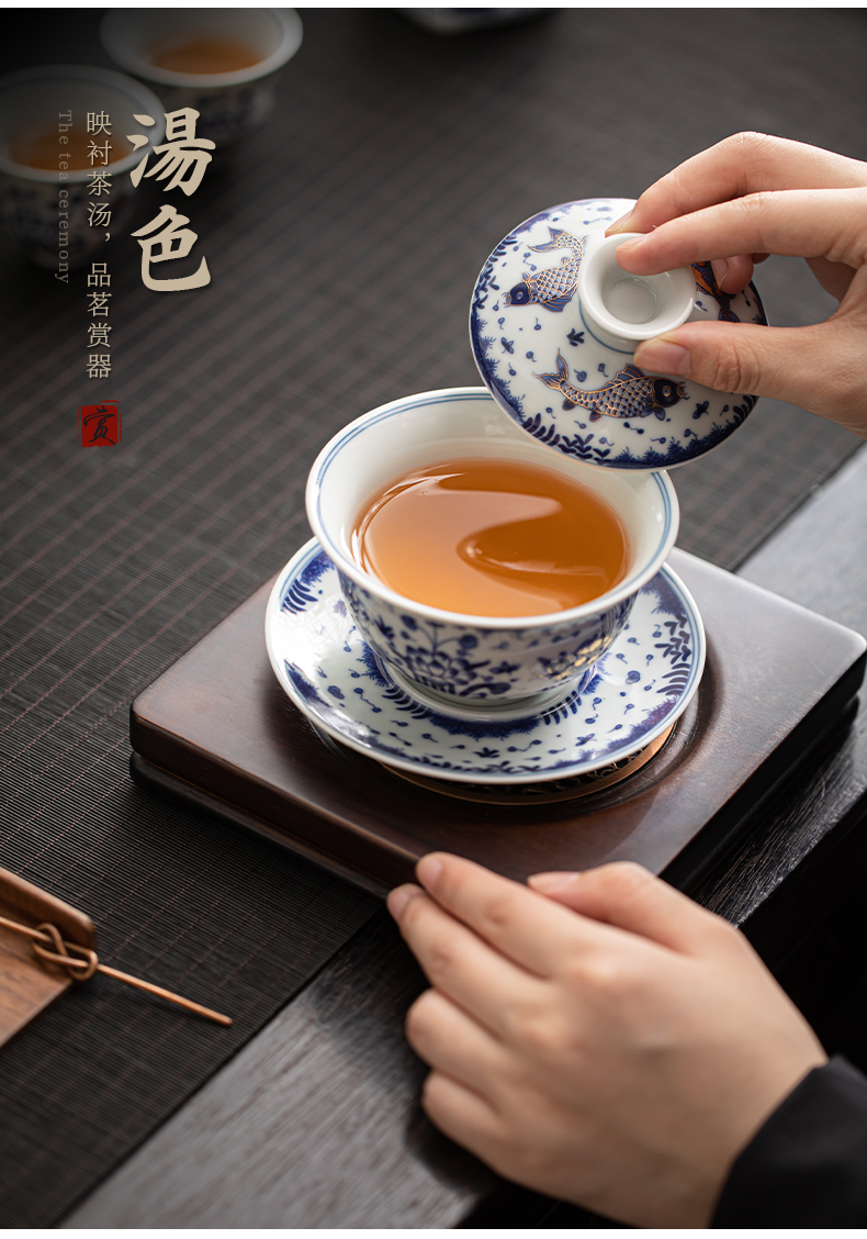 苏氏陶瓷(SUSHI CERAMICJS) 1071柴窑青花描金鱼藻纹非遗大师苏爱珍作品(单位:套) 白色
