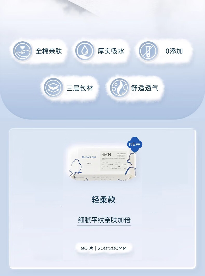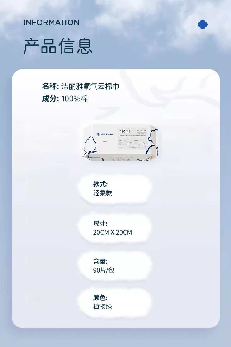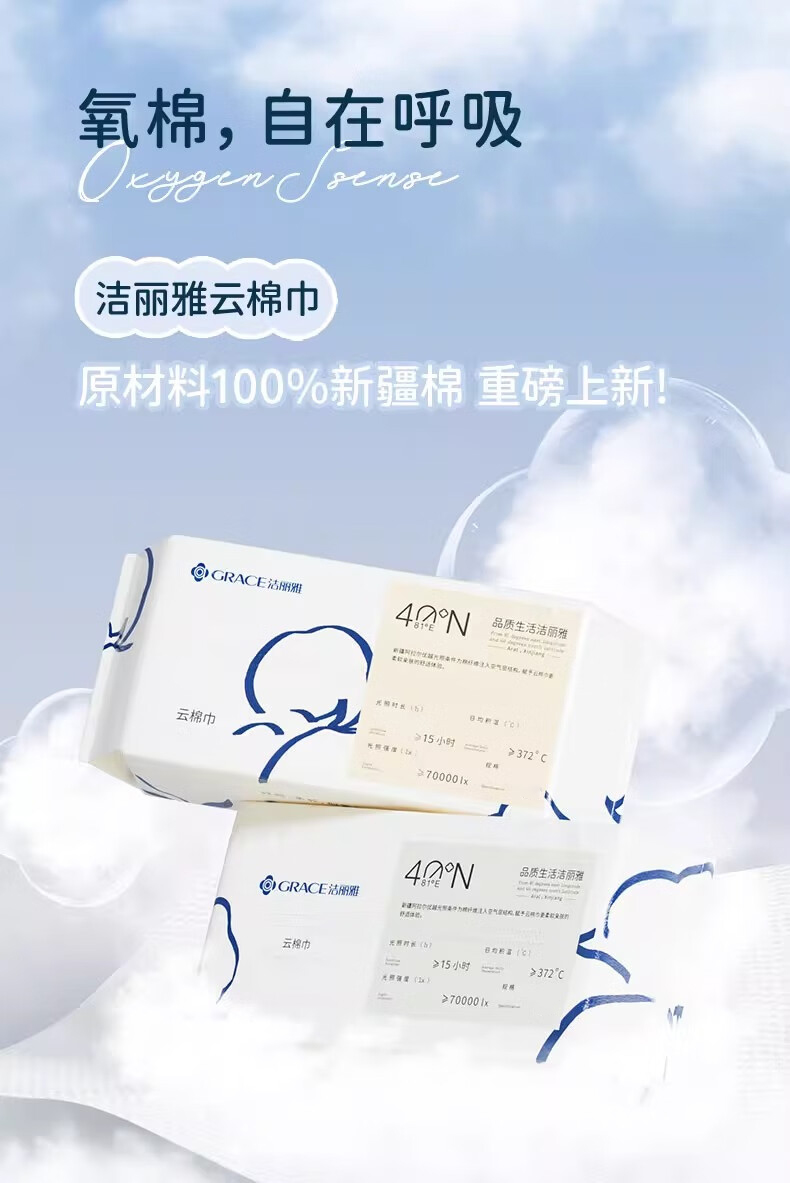 洁丽雅(Grace)氧气云棉柔巾100%棉一次性洗脸巾20*20CM轻柔款90片6包单位:包 白色
