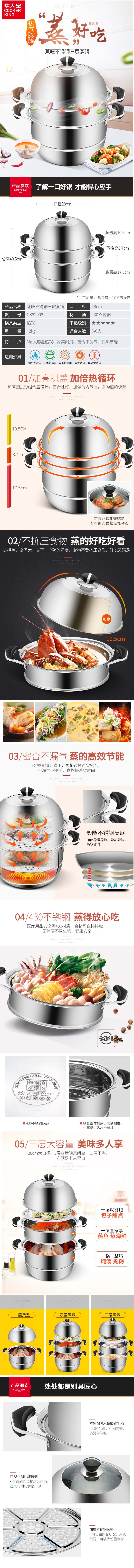 炊大皇蒸旺不锈钢三层28cm蒸锅CK82008(单位:个)不锈钢色