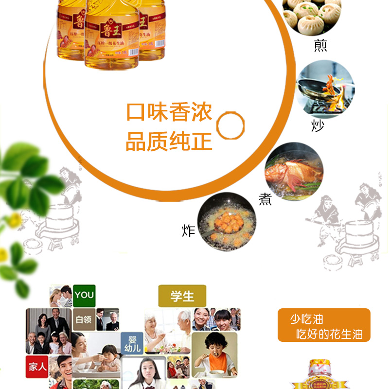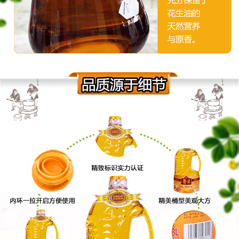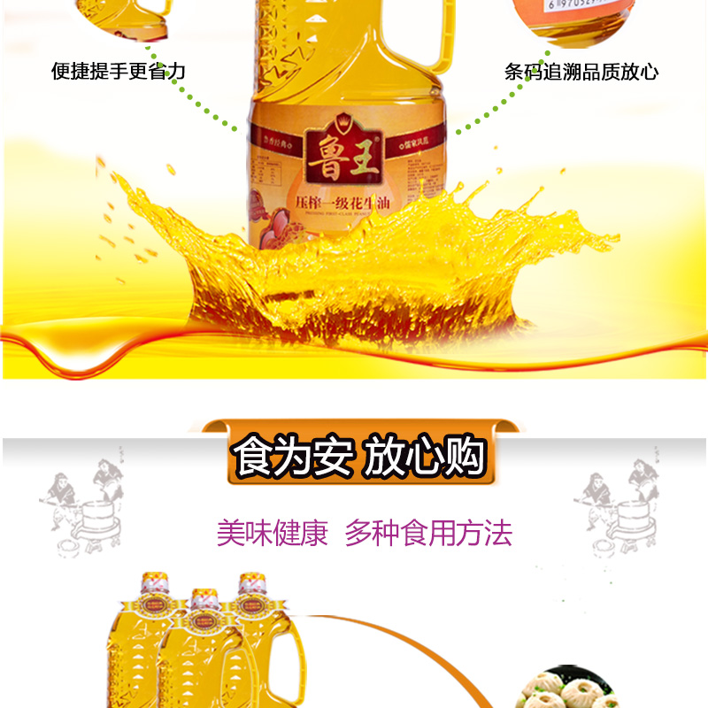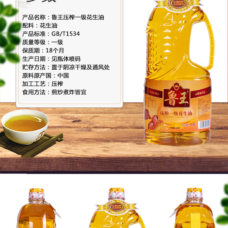 鲁王压榨一级花生油 金色 1.8L