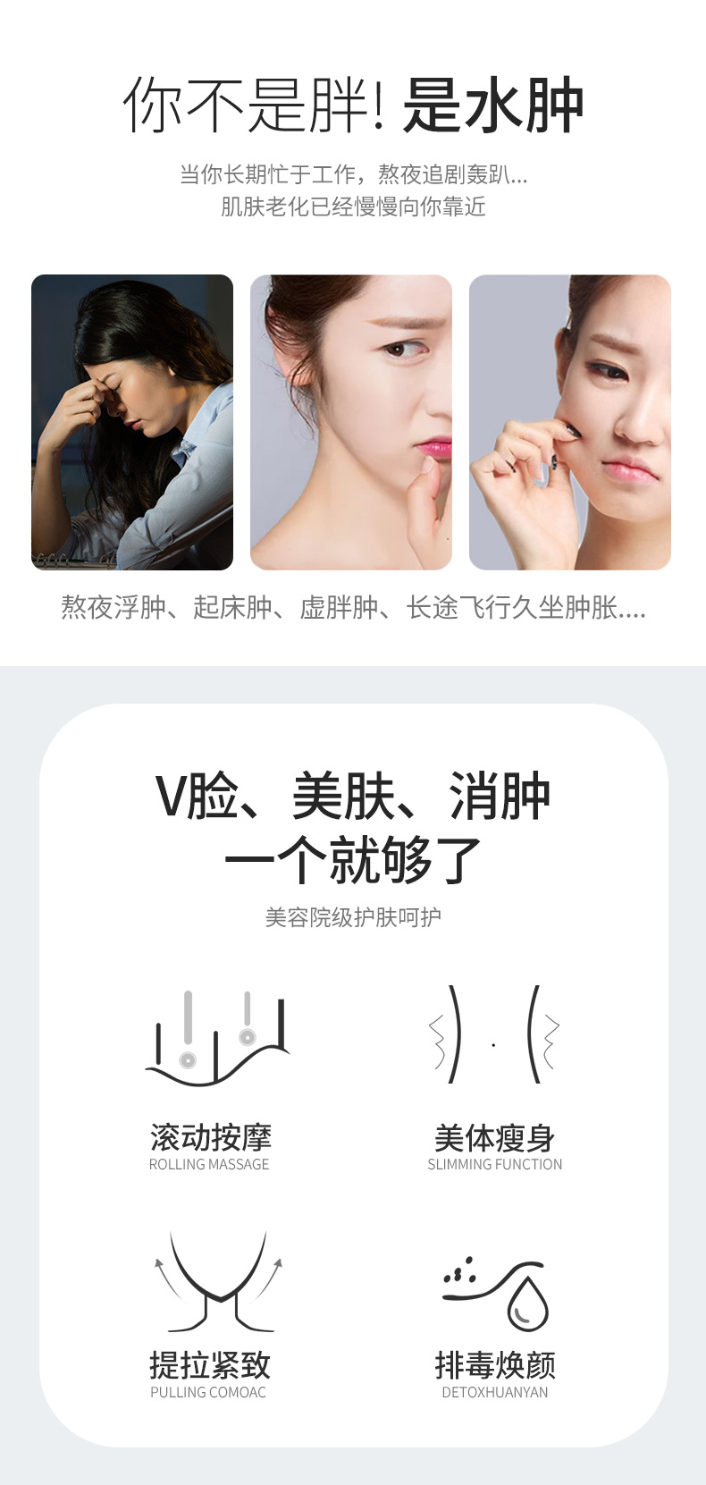 V.ONE V脸仪美容提拉紧致滚轮式mini瘦脸仪 DS001 银色