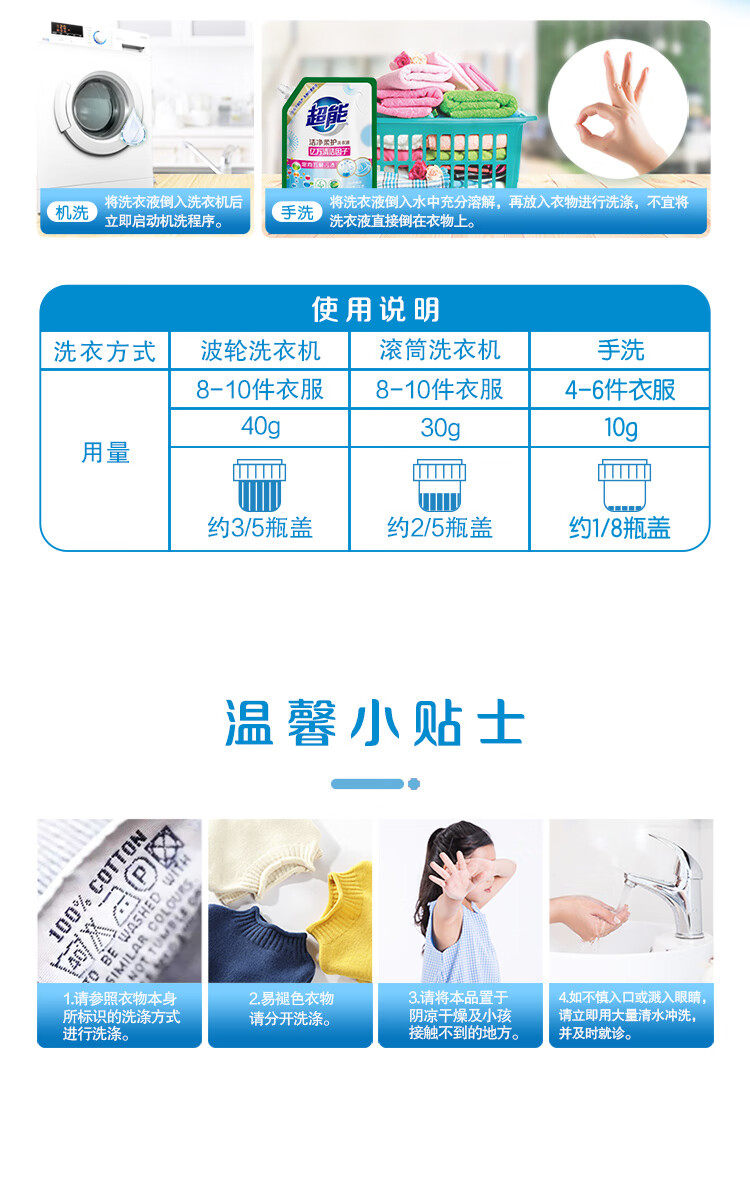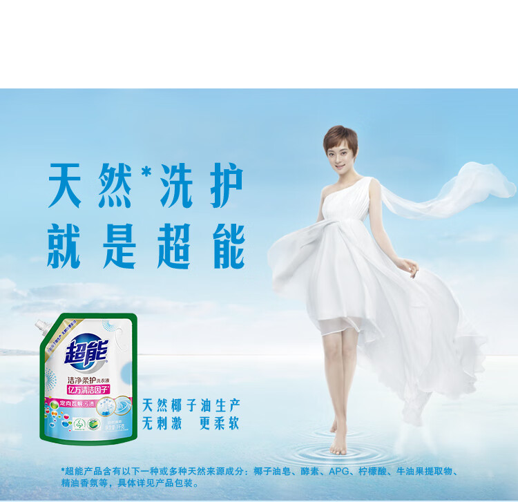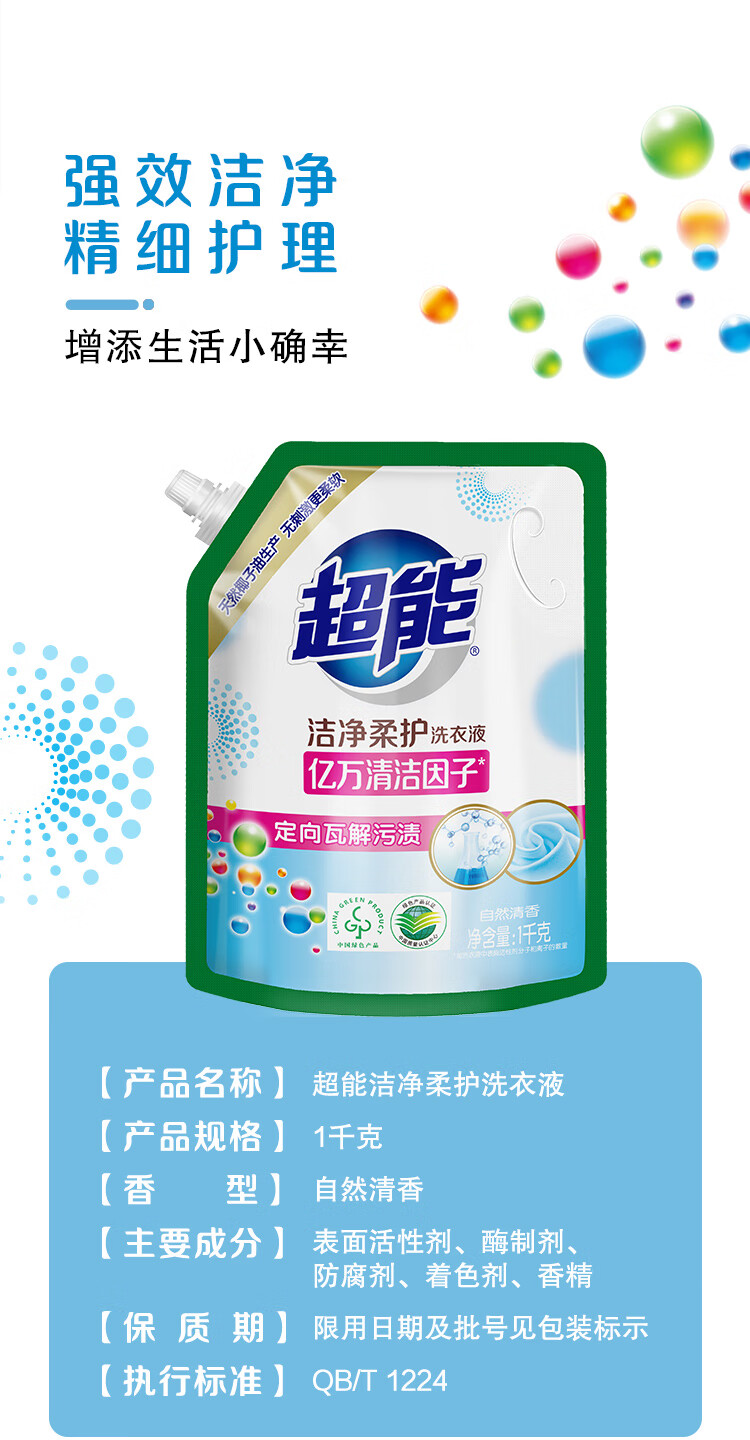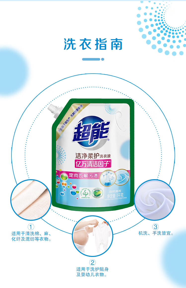 1kg超能洁净柔护洗衣液(鲜艳亮丽)(D)2袋装 白色